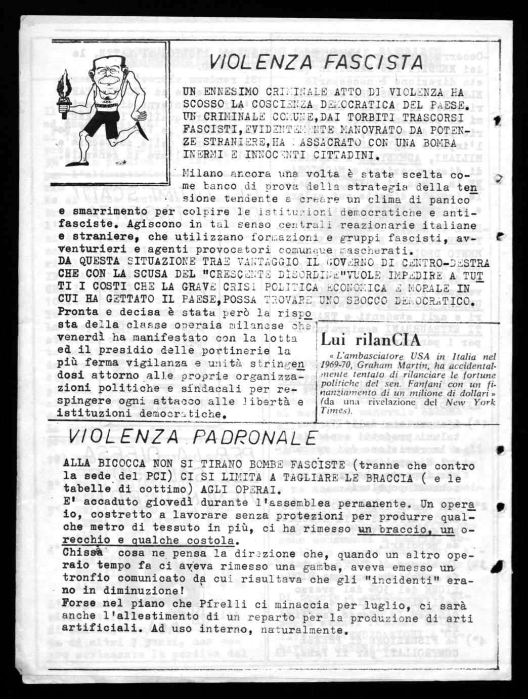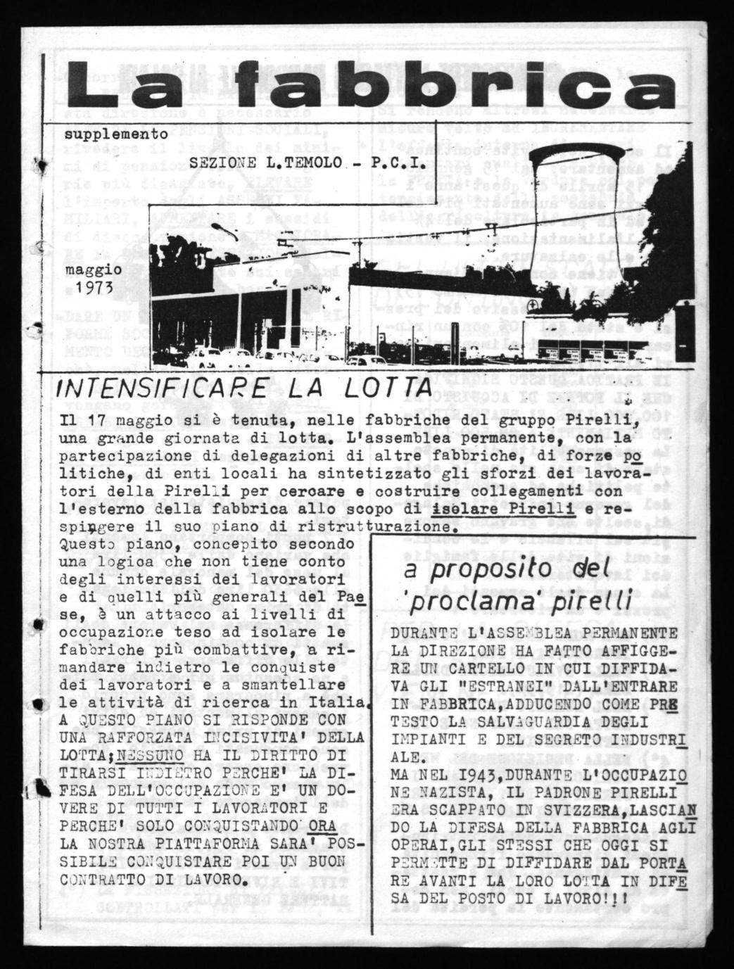 Il 17 maggio si è tenuta, nelle fabbriche del gruppo Pirelli, una grf-tnde giornata di lotta. L'assemblea permanente, con la partecipazione di delegazioni di altre fabbriche, di forze po Miche, di enti locali ha sintetizzato gli sforzi dei lavoratori della Pirelli per ceroare e costruire collegamenti con l'esterno della fabbrica allo scopo di iselare Pirelli e respiggere il suo ciano di ristrutturazione. questo piano, concepito secondo una logica che non tiene conto degli interessi dei lavoratori