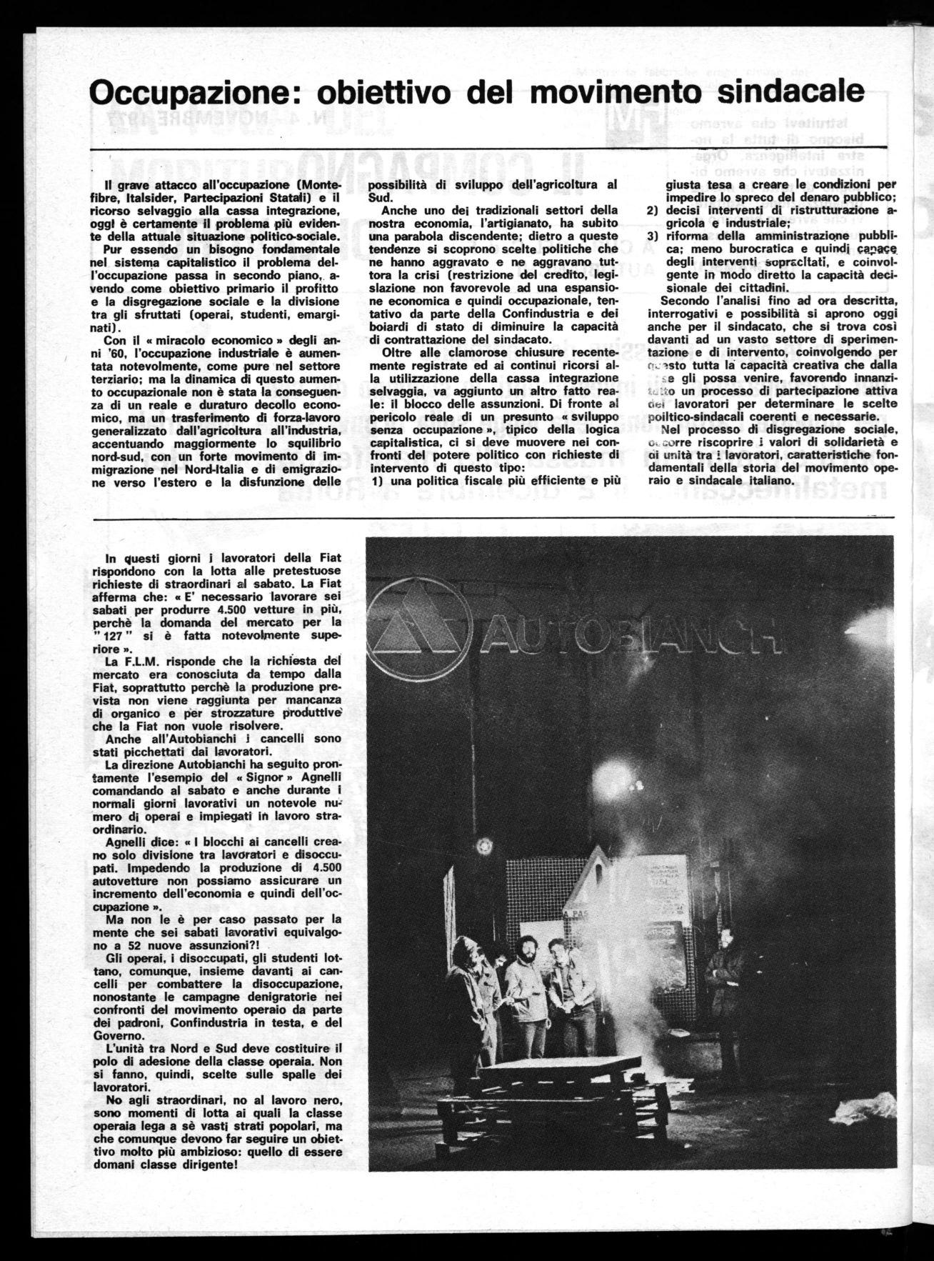 In questi giorni i lavoratori della Fiat rispondono con la lotta alle pretestuose richieste di straordinari al sabato. La Fiat afferma che: « E' necessario lavorare sei sabati per produrre 4.500 vetture in più, perchè la domanda del mercato per la " 127 " si è fatta notevolmente superiore ».