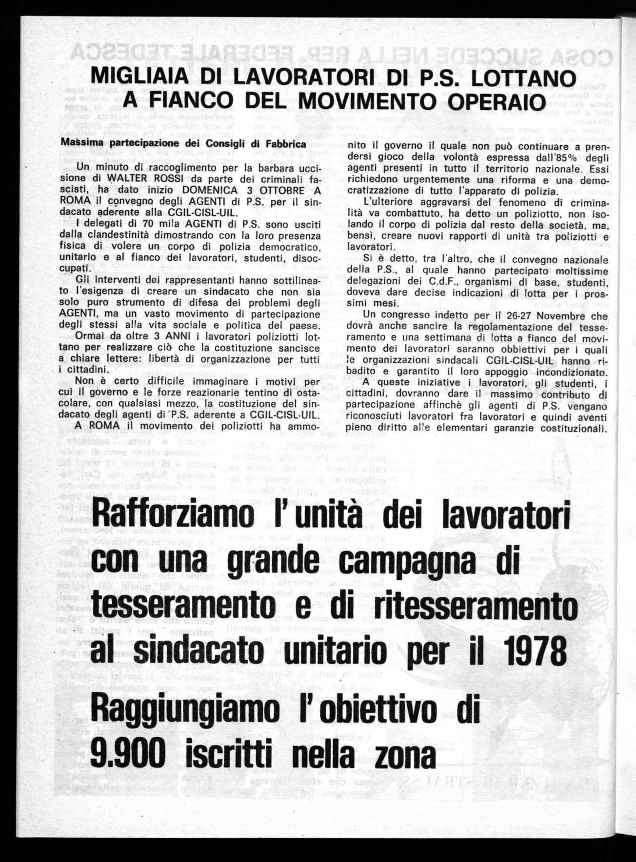 I luoghi di lavoro, negozi, uffici, trasporti pubblici si sono fermati in segno di protesta e di solidarietà alla famiglia del compagno Walter Rossi. Da tutte le parti si sono levati commenti di disprezzo e di sdegno, ma ancora I'MSI siede in parlamento indisturbato nonostante i lavoratori, gli antifascisti, i partiti della sinistra, abbiano chiesto l'immediato scioglimento del partito fascista.