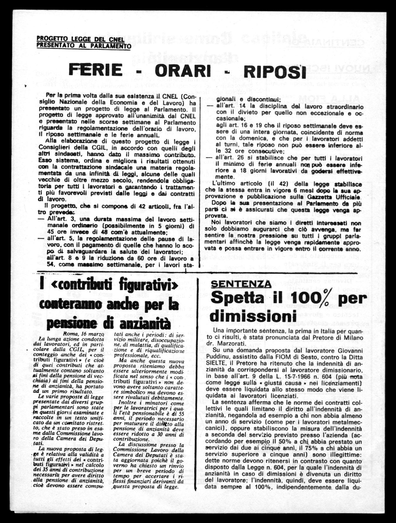 La direzione • gli operai devono cooperare... Noi diamo gli ordini • voi dovete ubbidire)! + 464.000Per la prima volta dalla sua esistenza il. CNE1. (Consiglio Nazionale della Economia e del Lavoro) ha presentato un progetto di legge al Parlamento. Il progetto di legge approvato all'unanimità dal CNEL presentato nelle scorse settimane al Parlamento riguarda la regolamentazione dell'orario di lavoro, il riposo settimanale e le ferie annuali_