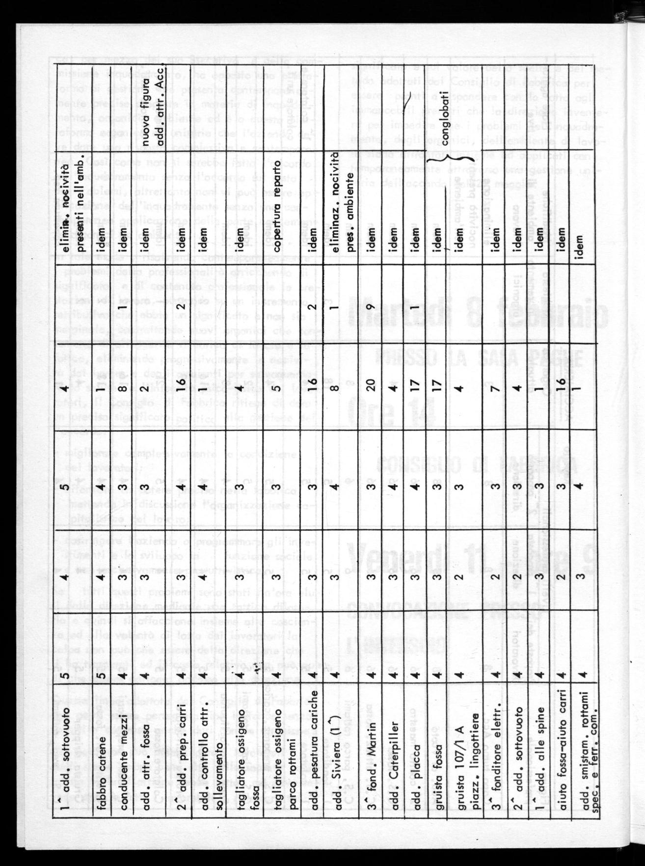 Sul piano propriamente formale oltre che politico sindacale non si può nascondere che l'accordo del 29 maggio riguarda contemporaneamente l'inquadramento, gli organici, l'ambiente di lavoro e le imprese. Il Consiglio di Fabbrica nell'affrortare la gestione e l'applicazione di tale accordo non poteva non avere presenti tutti questi aspetti e puntare ad una applicazione contemporanea e unitaria.