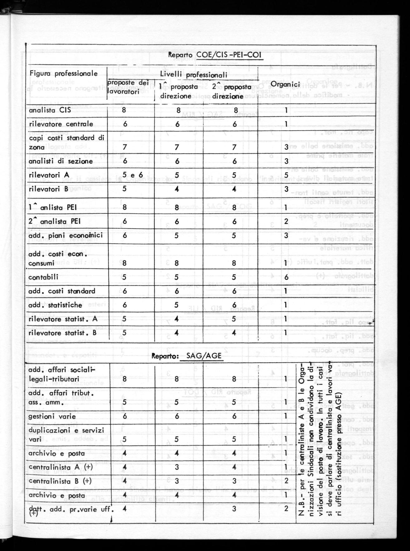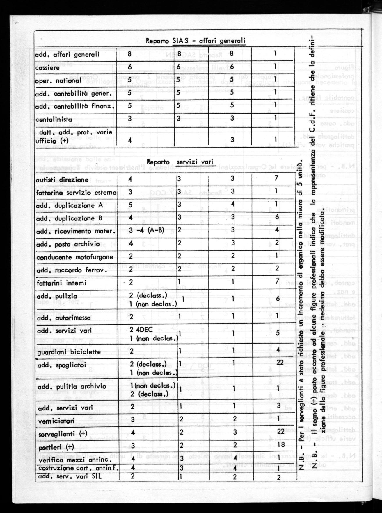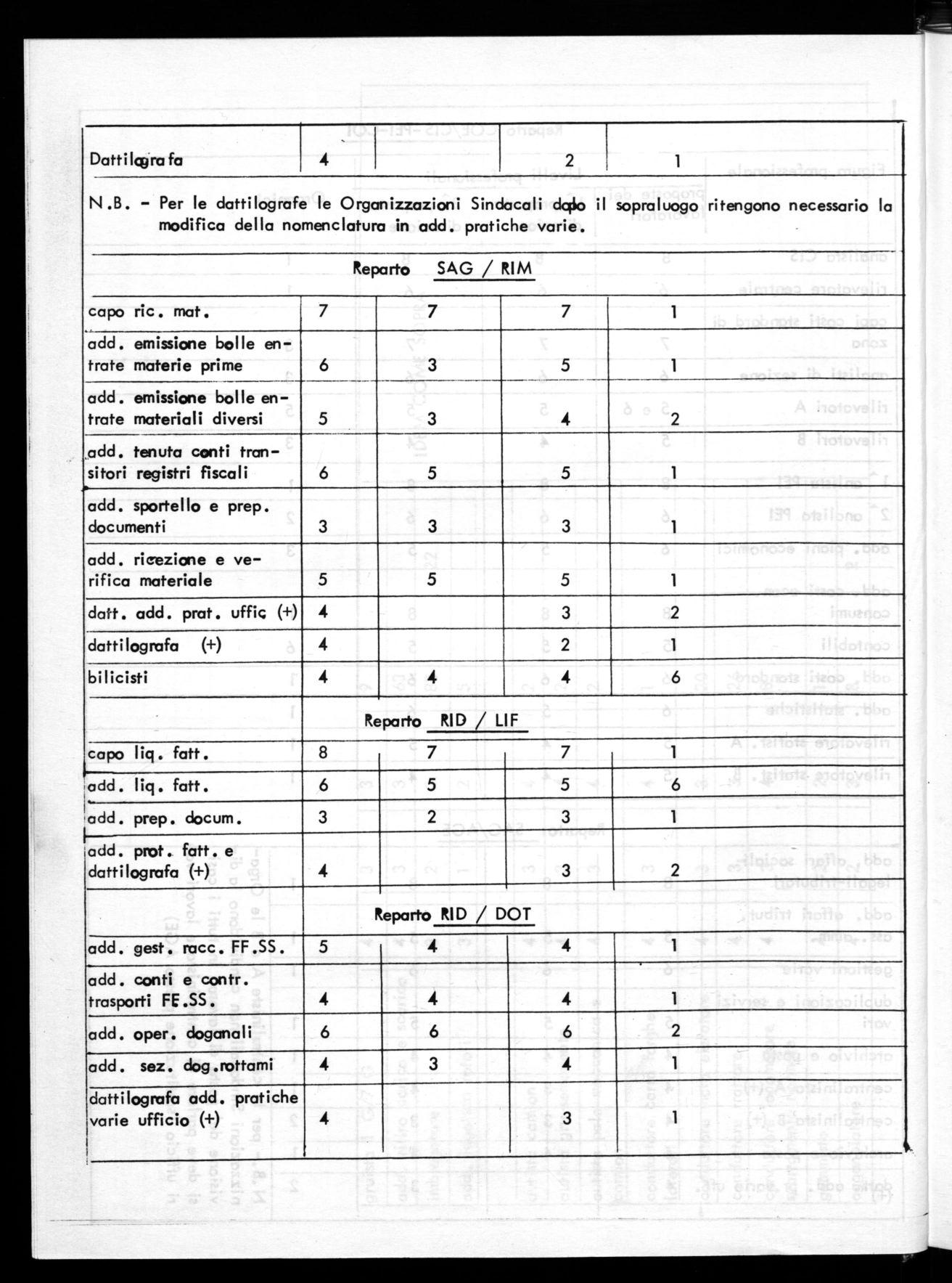 N.B. - Per le dattilografe le Organizzazioni Sindacali dgio il sopraluogo ritengono necessario la modifica della nomenclatura in add. pratiche varie.