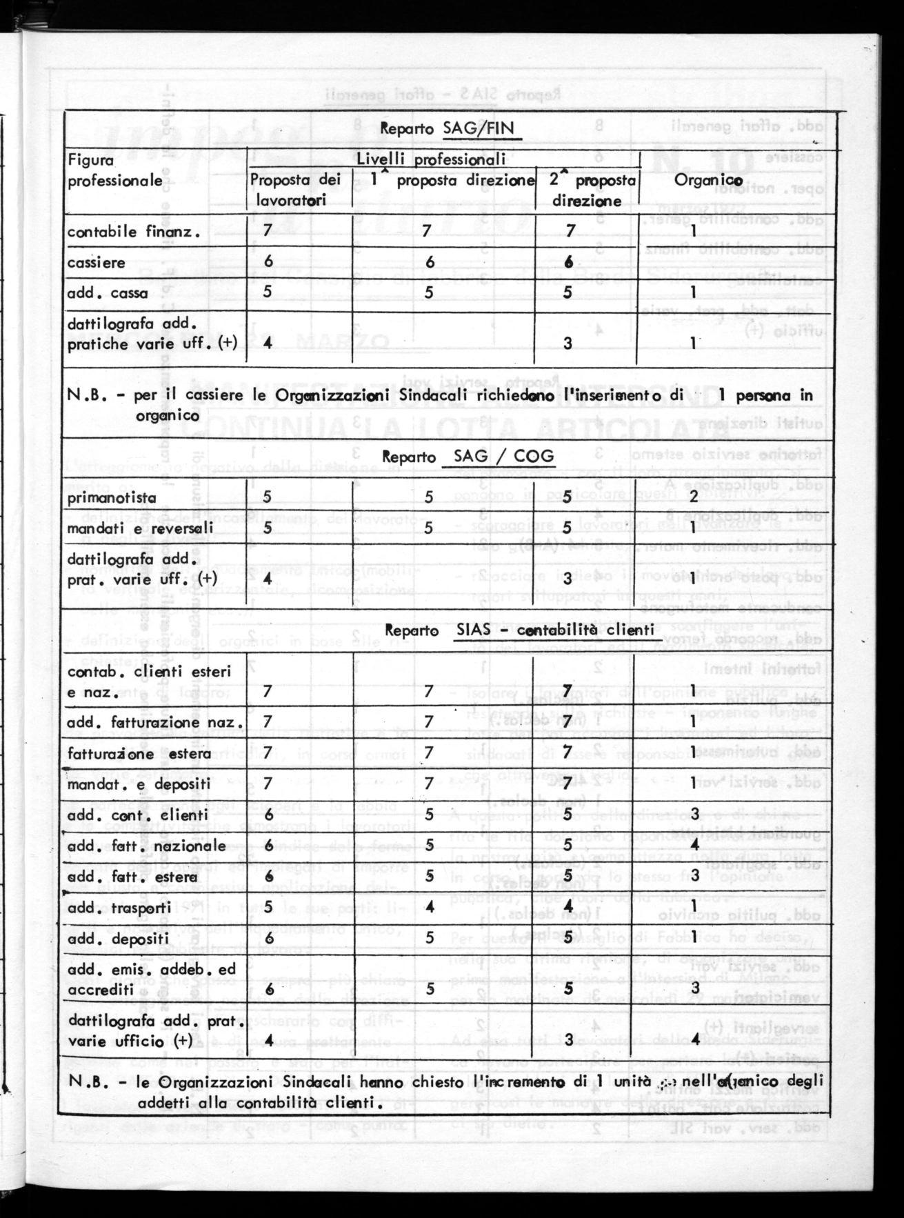 N.B. - le Organizzazioni Sindacali hanno chiesto l'incremento di 1 unità ::.3 nell'o<ianico degli addetti alla contabilità clienti.