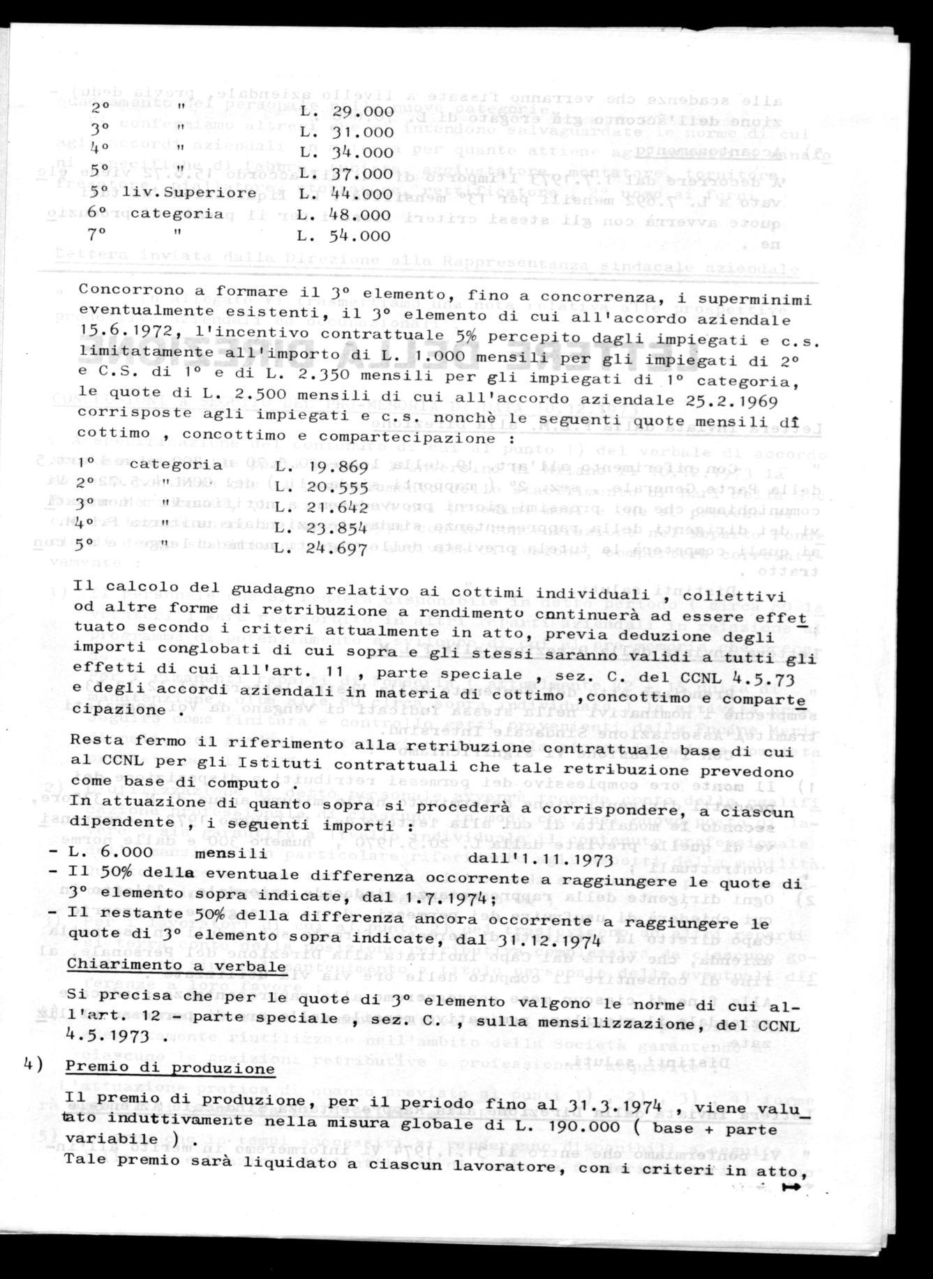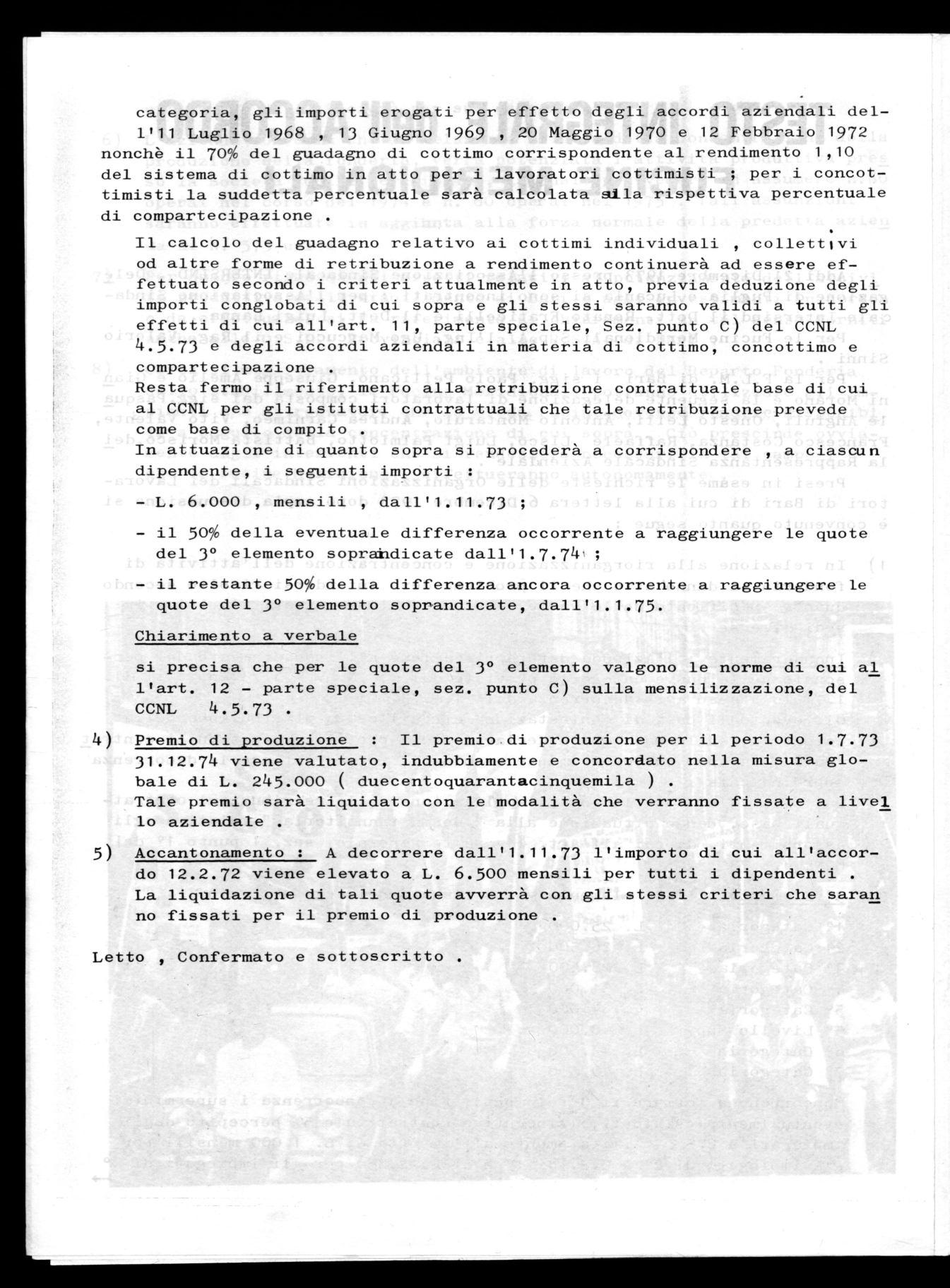 Premio di produzione : Il premio di produzione per il periodo 1.7.73 31.12.74 viene valutato, indubbiamente e concordato nella misura globale di L. 245.000 ( duecentoquarantacinquemila )