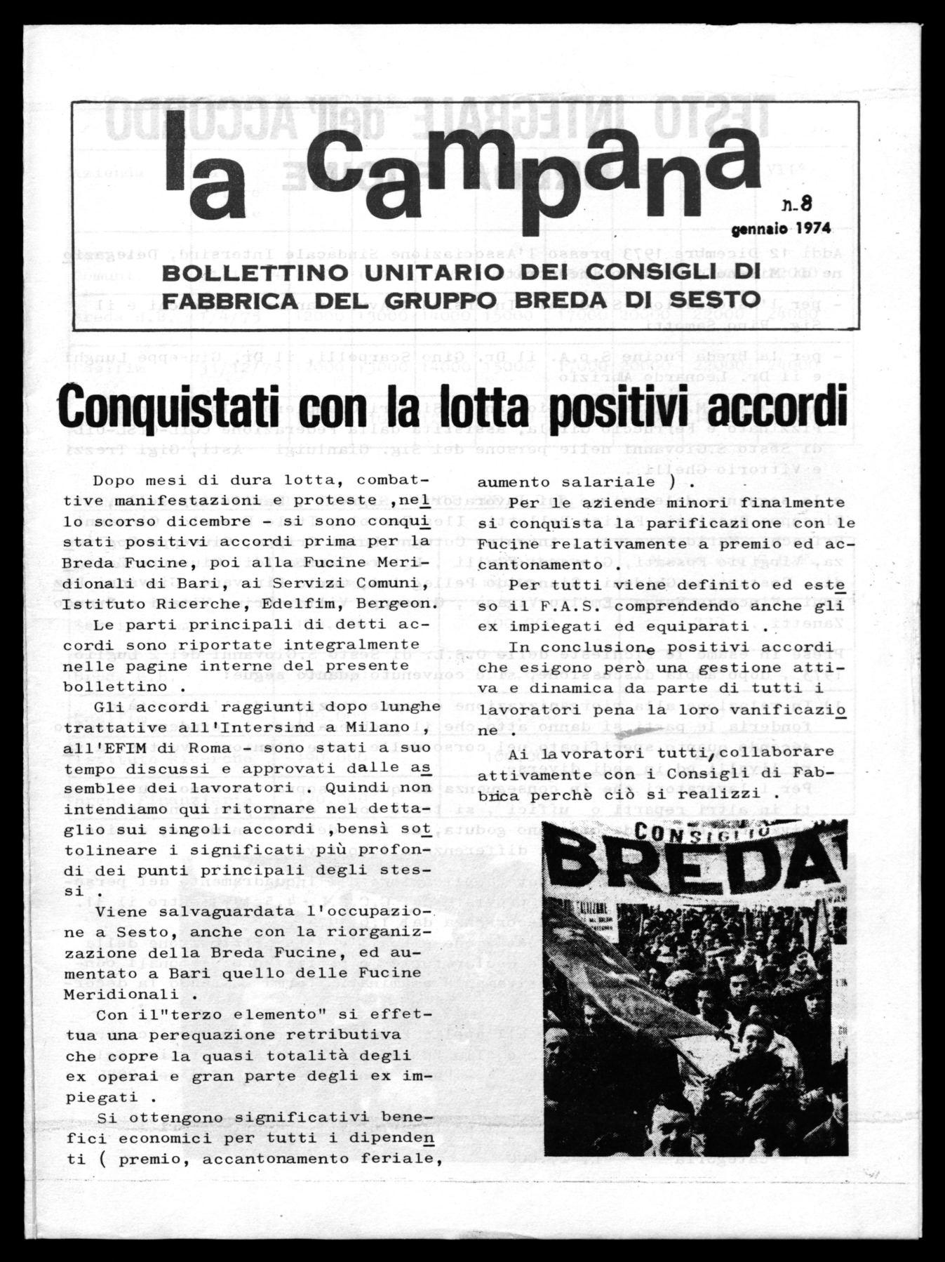 BOLLETTINO UNITARIO DEI CONSIGLI DI FABBRICA DEL GRUPPO BREDA DI SESTOAddì 12 Dicembre 1973 presso l'Associazione Sindacale Intersind, Delegazio ne di Milano , si sono incontrati :