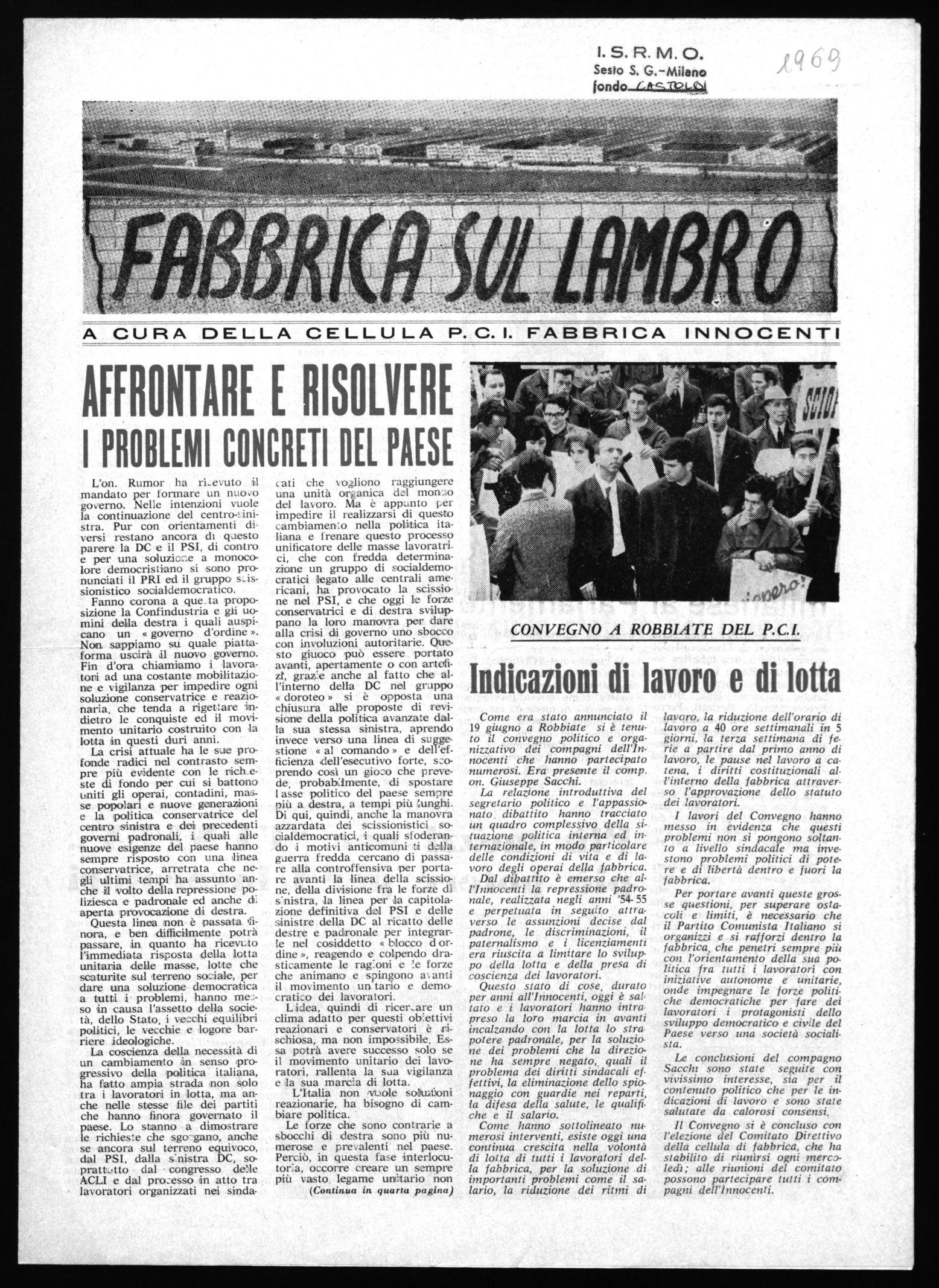 lotta I. S. R. M. O. Sesto S, G.-Milano fondo-LA.52214, ifq 6 '9 A CURA DELLA CELLU LA P. C. I. FABBRICA INNOCENTI