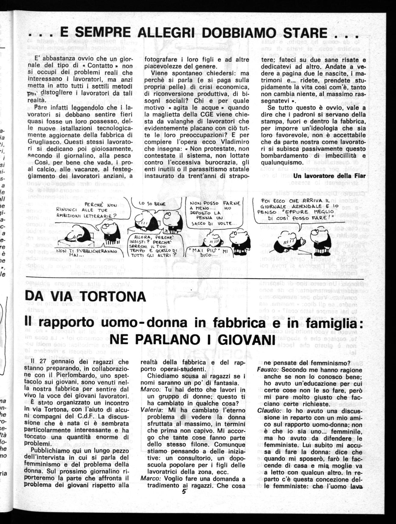 i piatti e lei legge il giornale; io da come ho capito, è tutta un'altra cosa, si tratta di una collaborazione ecc. Solo che è una cosa molto difficile da spiegare in fabbrica: se lo fa una donna va bene, ma se lo dice un uomo, è difficile perchè o riesce a spiegare molto bene le cose, o se no ti fraintendono subito.