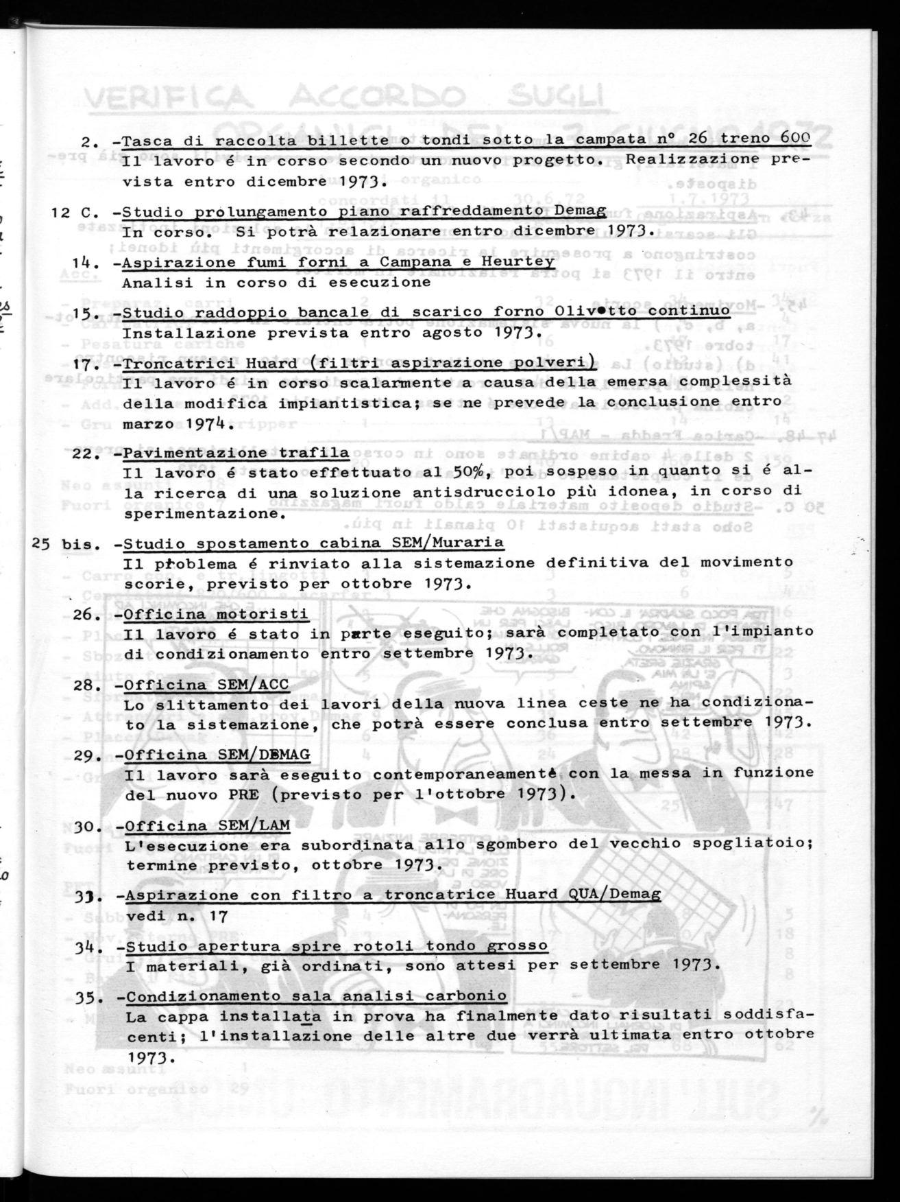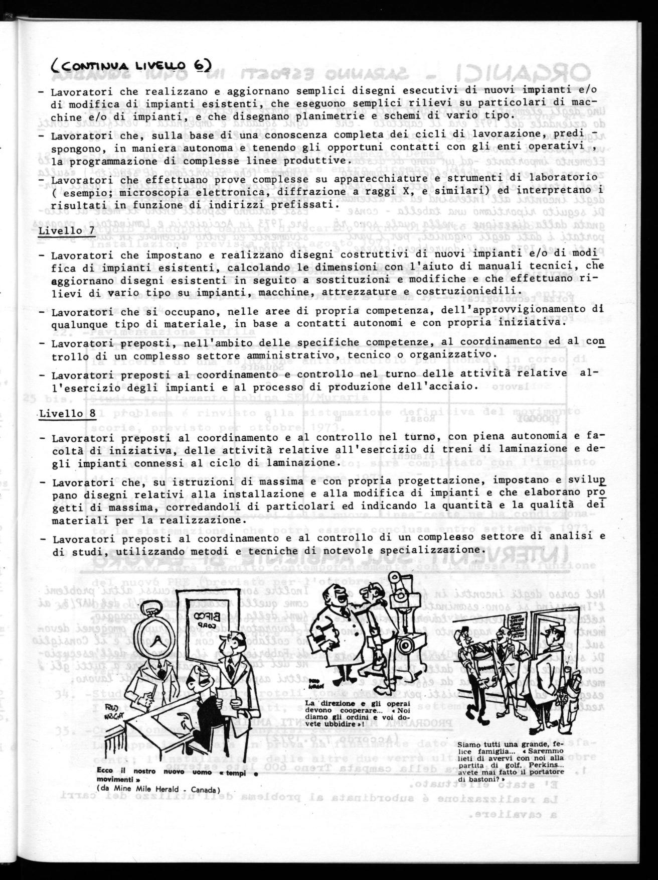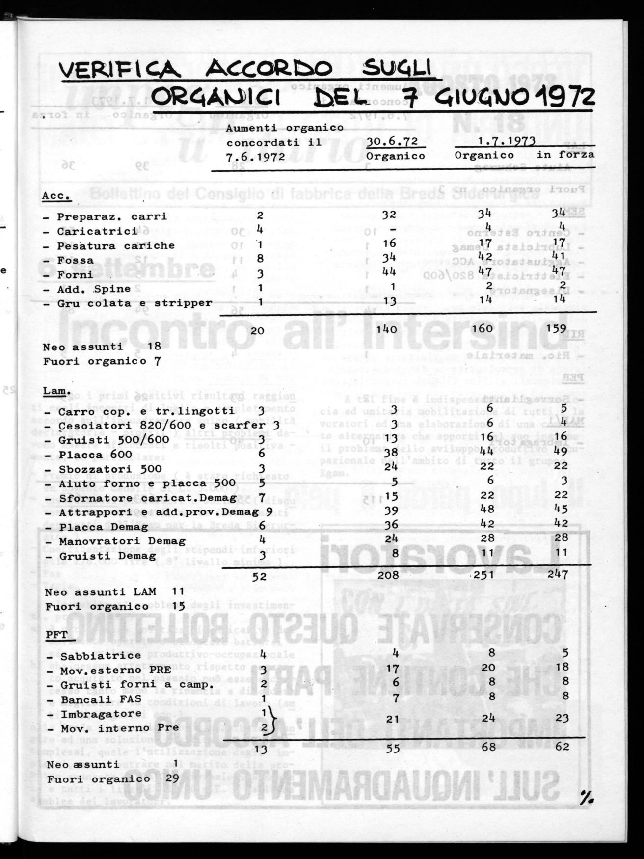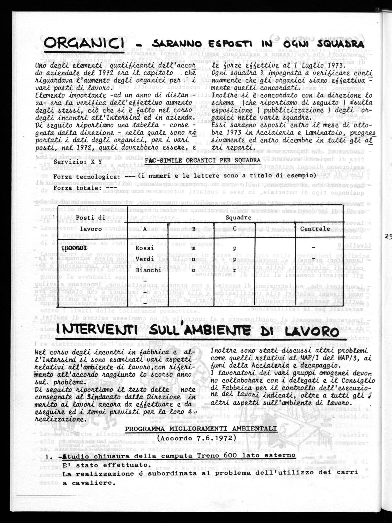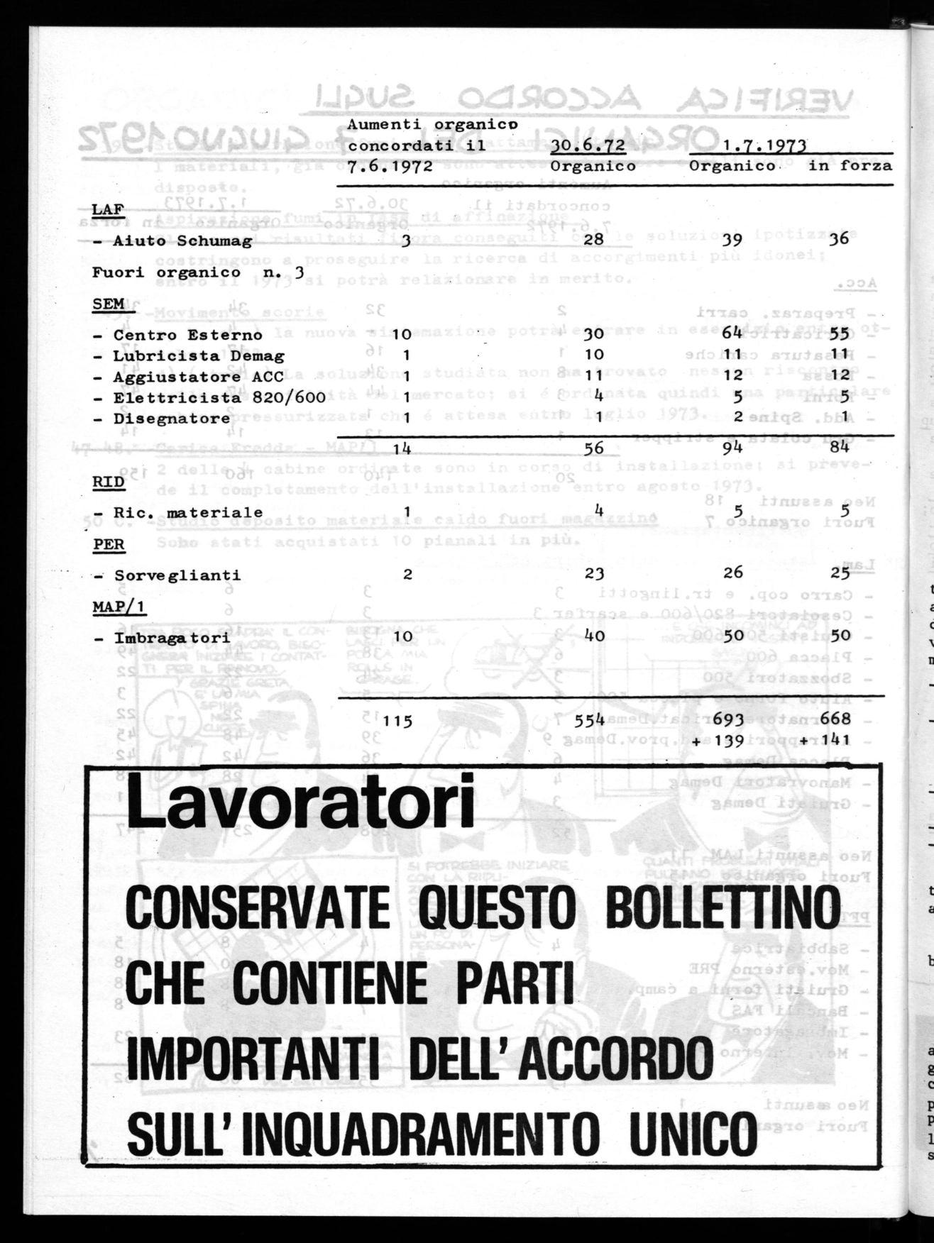 La direzione e gli operai devono cooperare... Noi diamo gli ordini e voi dovete ubbidire.!Uno degli elementi quatígicanti dell'accot do azienda/e del 1972 eia il capitolo -cke7 Aiguakdava l'aumento degli onganíci pek i vatti po3ti di Lavorio. E/emento impontante -ad un anno di diAtanza- exa /a vetigica deWe«ettivo aumento degli 3tuisi, ciò' che è gatto nel cono 0 degli incontti aWIntenzind ed in azienda. Di 3eguito tipo/t-timo una tabe//a - comegnata da/La ditezione - nella. quale 4ono poAtati i dati degli otganici, pet i vanti po4ti, nel 1972, quali dovnebbeto use4e, e
