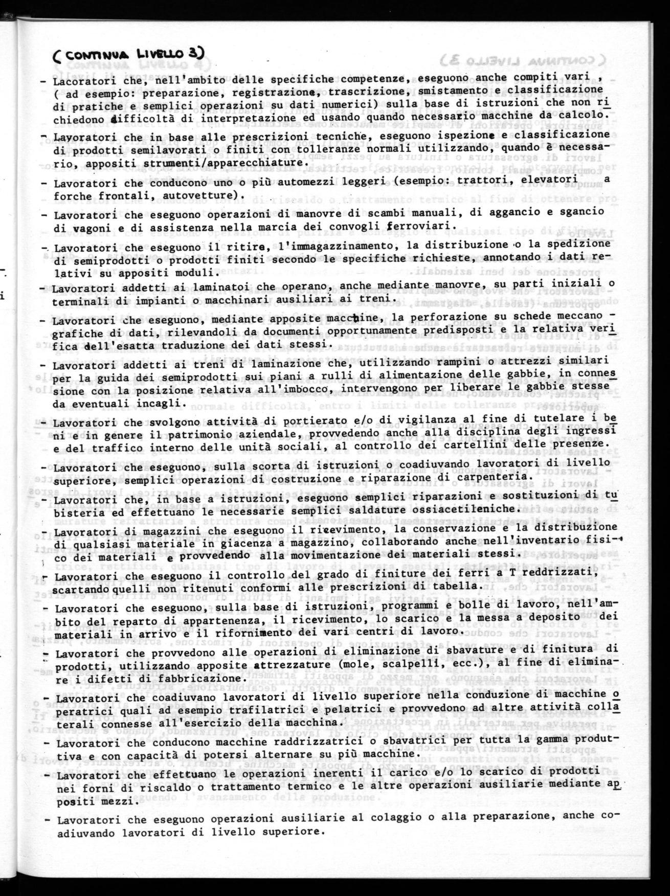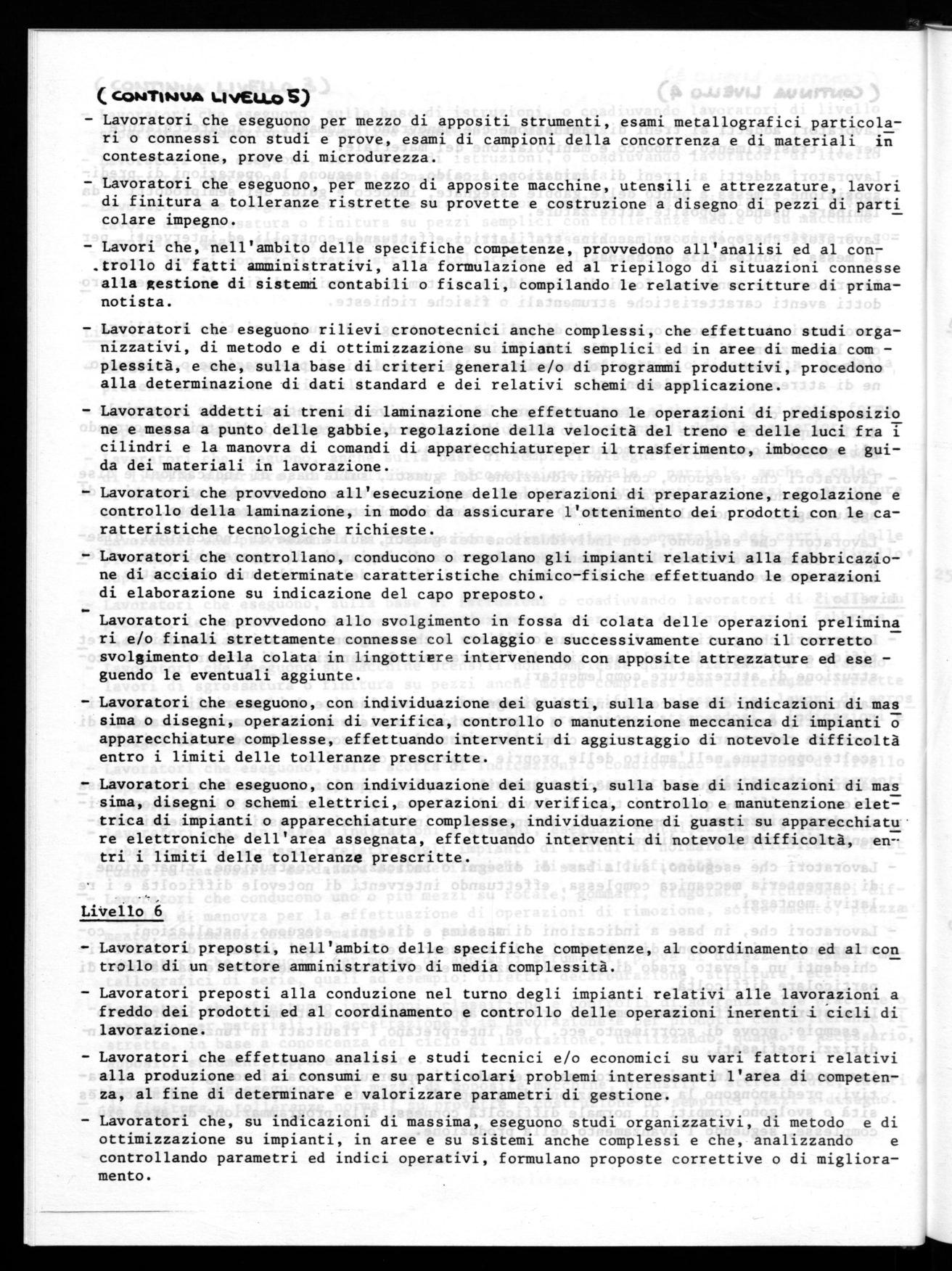 - Lavoratori che eseguono rilievi cronotecnici anche complessi, che effettuano studi organizzativi, di metodo e di ottimizzazione su impianti semplici ed in aree di media complessità, e che, sulla base di criteri generali e/o di programmi produttivi, procedono alla determinazione di dati standard e dei relativi schemi di applicazione.