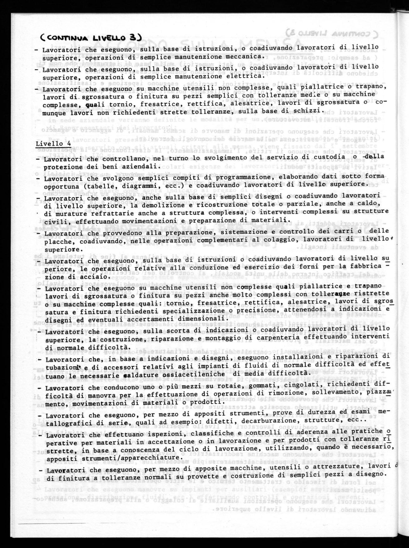 In considerazione delle particolari esigenze dei lavoratori immigrati e pendolari, verranno definite a livello di azienda - entro il prossimo mese di ottobre - le modalità per consentire ai lavoratori fuori turno della fabbrica, che ne facciano richiesta, di consumare il pasto come sopra indicato al prezzo di L. 300.-