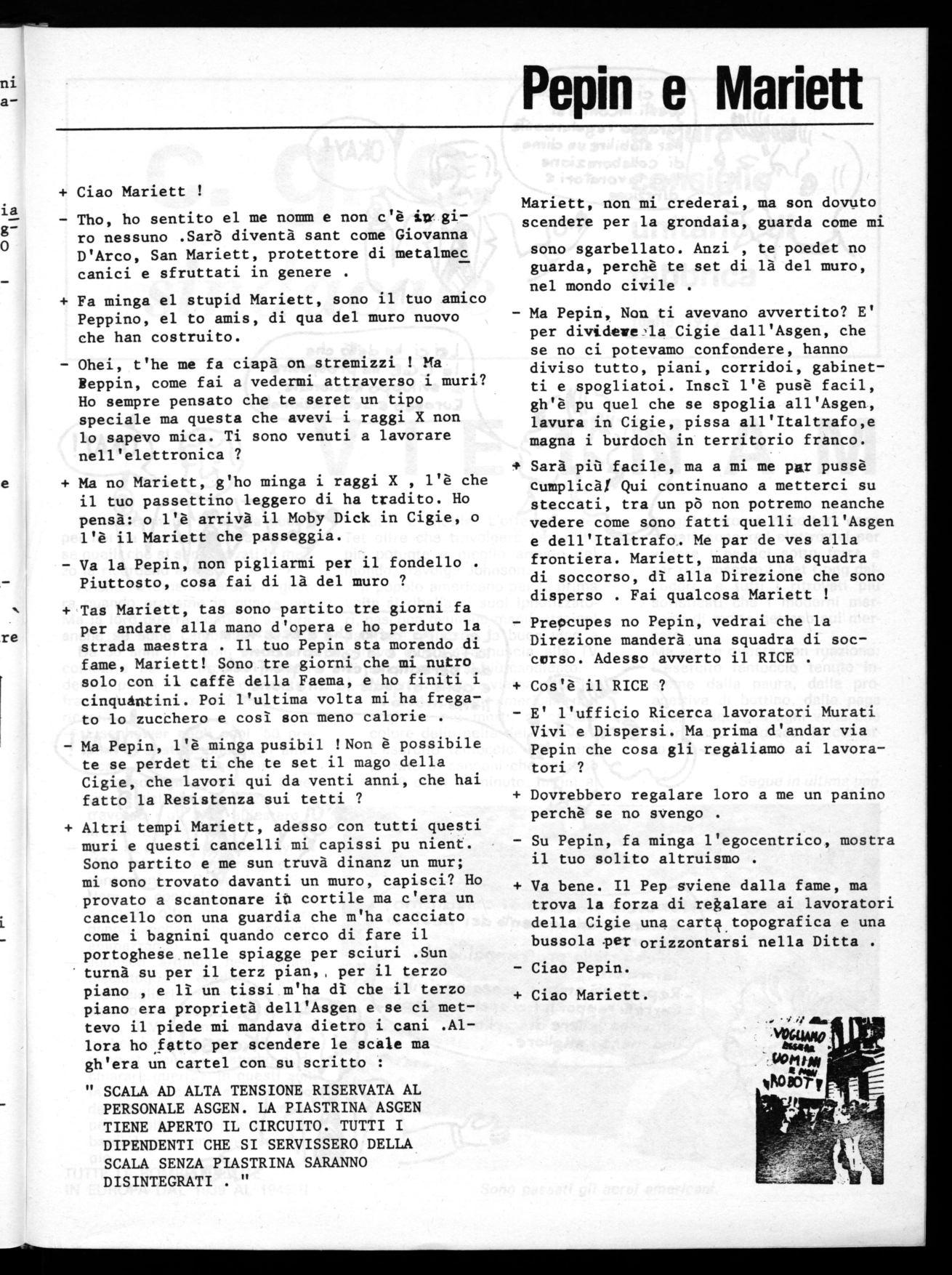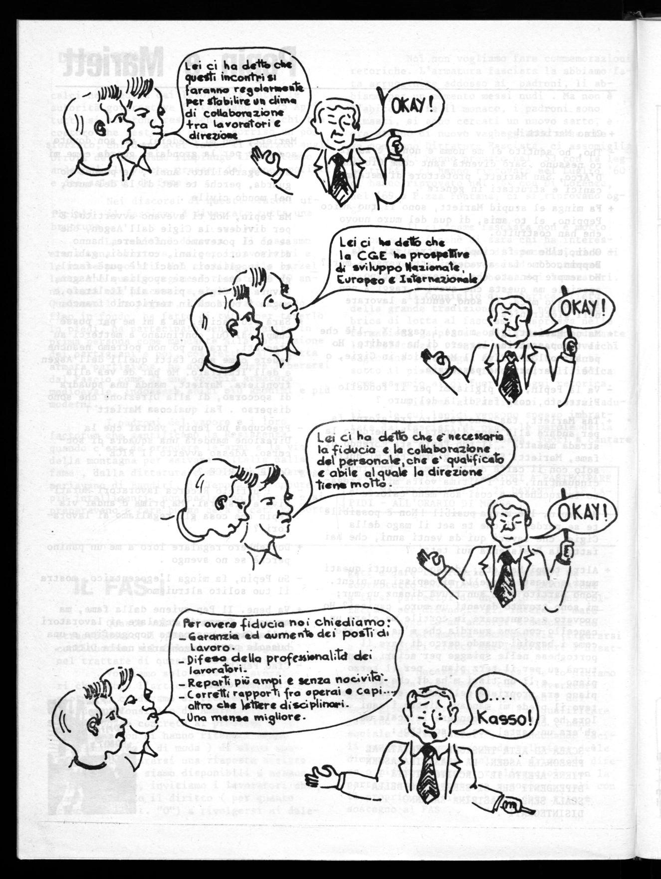 Vogliamo solo dire ai lavoratori che, dopo l'articolo dell'ultimo giornale, credevamo di ricevere dal cosidetto"Consiglio di Amministrazione" una risposta concreta ai problemi posti.