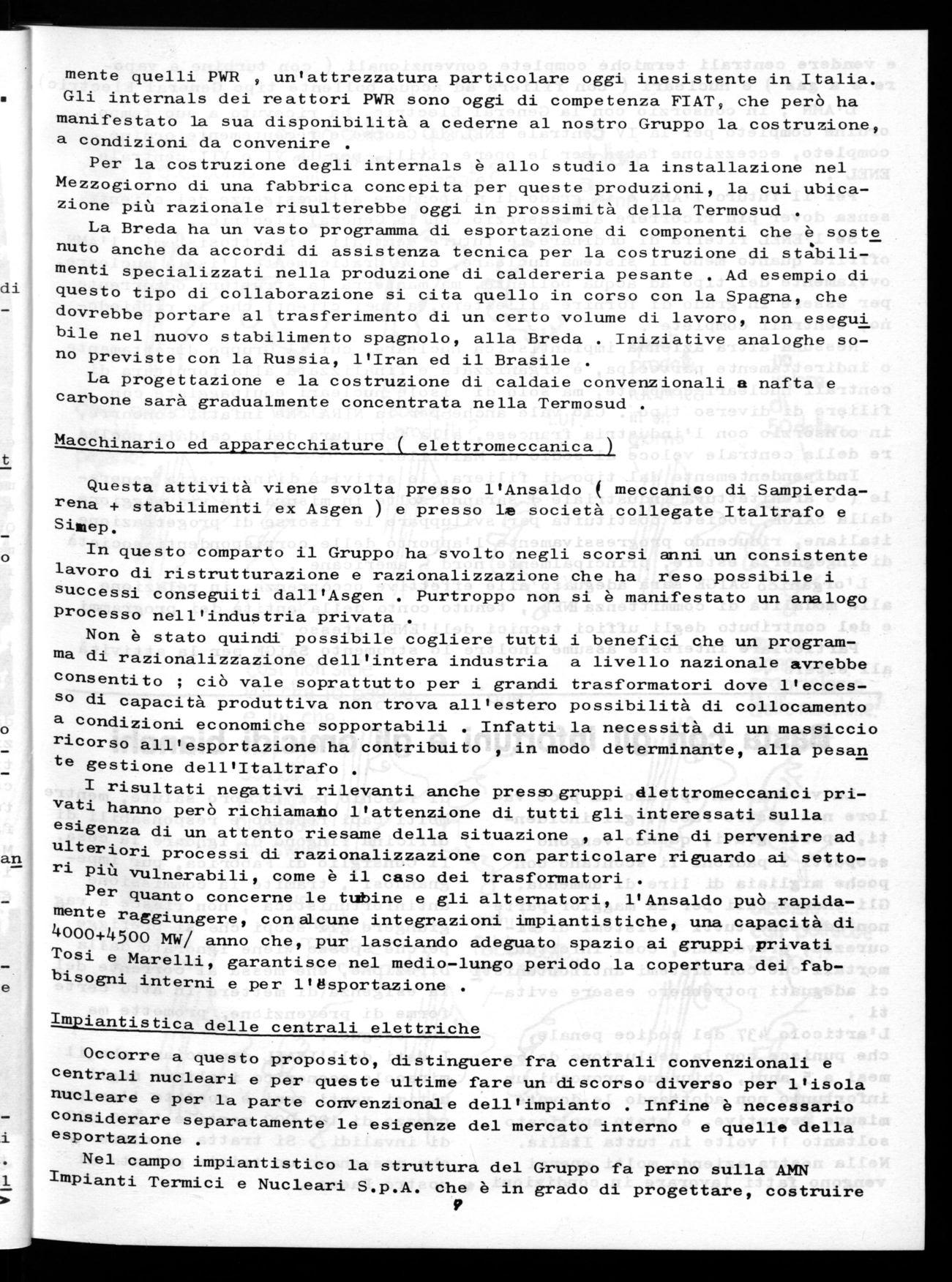 Ridimensionamento graduale del reparto Macchine Utensili. Resteranno in attività soltanto le macchine medio -pesanti legate allaproduzione nucleare .Della attuale forza lavoro occupata nel reparto — 63 persone ) , da una nostra valutazione abbiamo desunto che dovrebbero rimanere circa 35 Lavorato ri . Gli altri, naturalmente verran no destinati ad altri reparti e ad altri lavori .