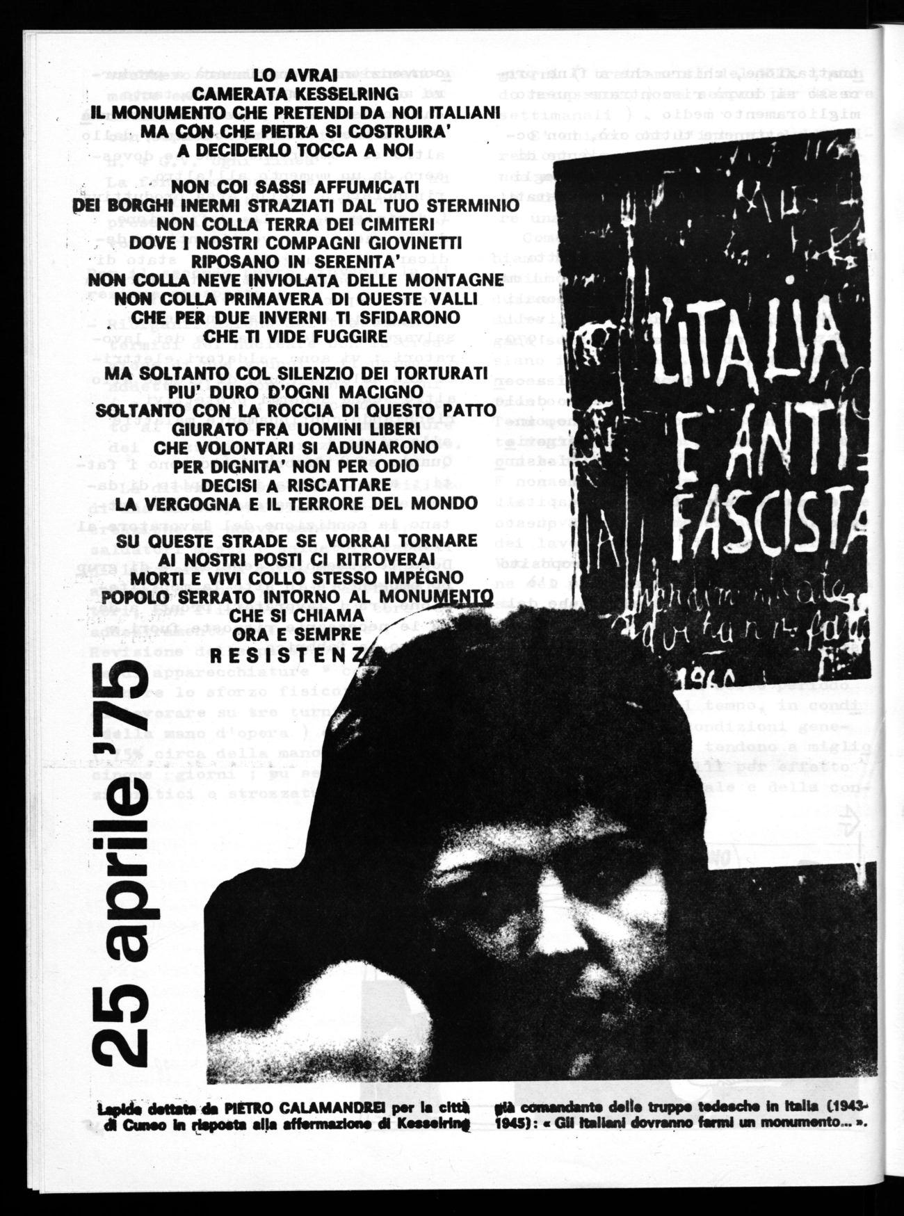 tapIde dettate 'de PIETRO CALAMANDREI per la ditti pia comandante delle truppe tedesche in Italia (1945dl Cuneo In risposta alla affermazione dl Kassekine 1945): « Gil Italiani dovranno farmi un monumento-..