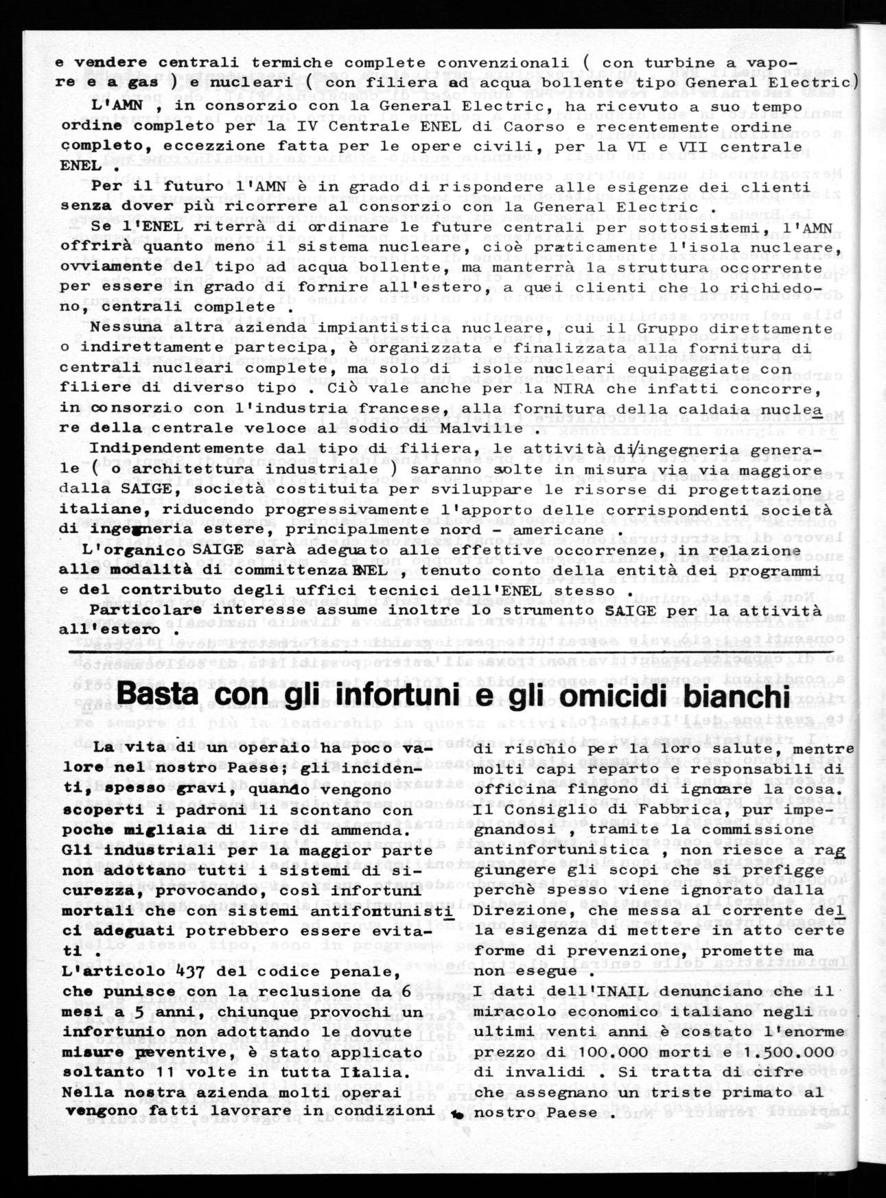 Uno dei settori più esposto ai tentativi di ristrutturazione è quello termoelettro-nucleare . E' ormai arcinota la situazione energetiga in cui versa il paese e conseguente mente la necessità di convertire la produzione da una produzione prevalentemente a carattere convenzionale in una a carattere fondamentalmente nucleare . E che questa ricon versione comporti un adeguamento della forza lavoro alle nuove migen ze produttive, è naturalmente scontato . Quello che invece non è as ,solutamente scontato, ma che il padrone vuol far passare, è che questa