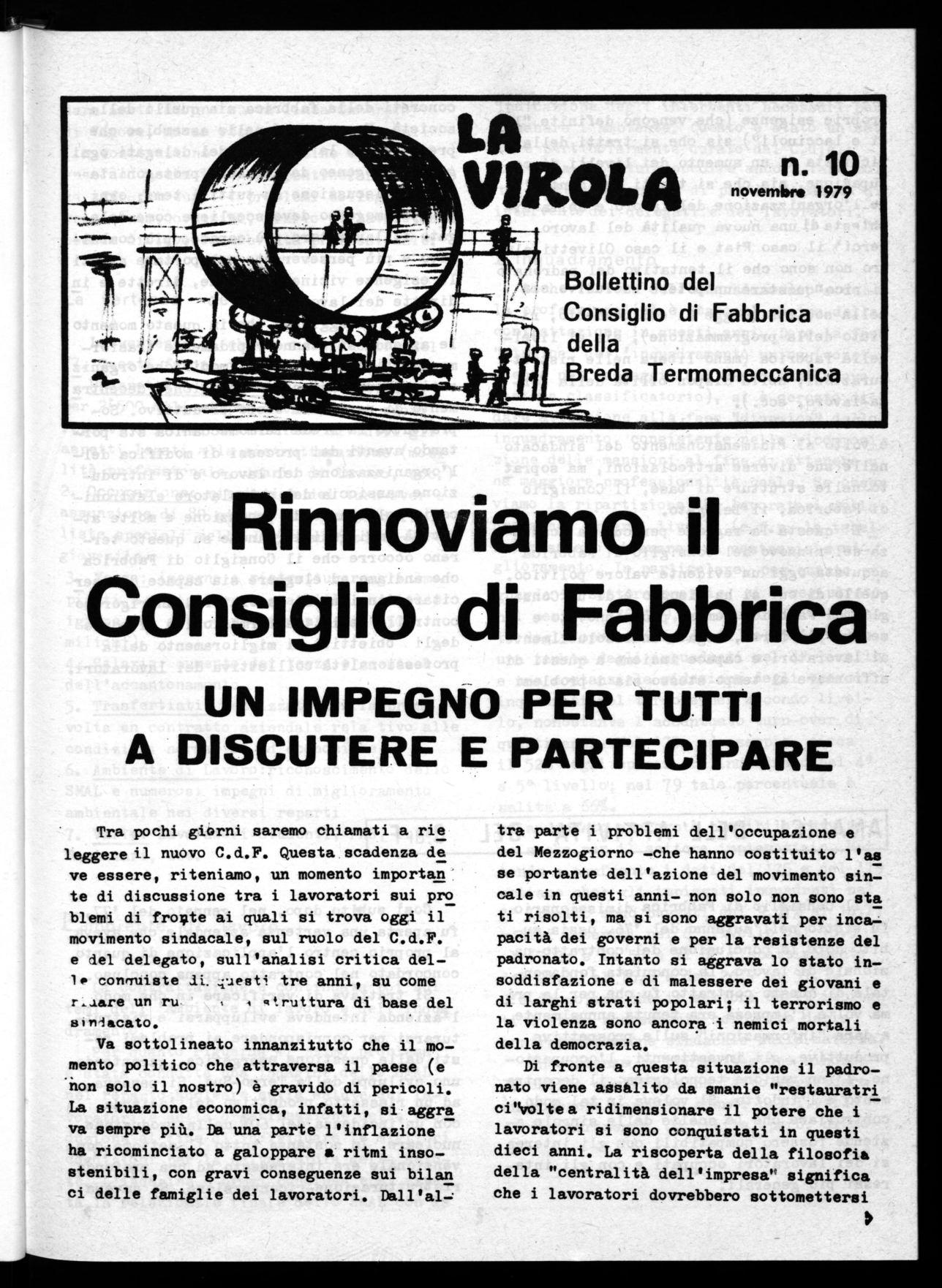 necessità di rendere più incisivi i ca— nali di comunicazione: necessità di contat ti più stretti tra delegati e gruppi omo— genei; uso più efficace dell'assemblea generale e di quella di gruppo omogeneo.; pubblicazione periodica del gionalino-di fabbrica "la Virola" e del bollettino di 7 informazioni sindacali.