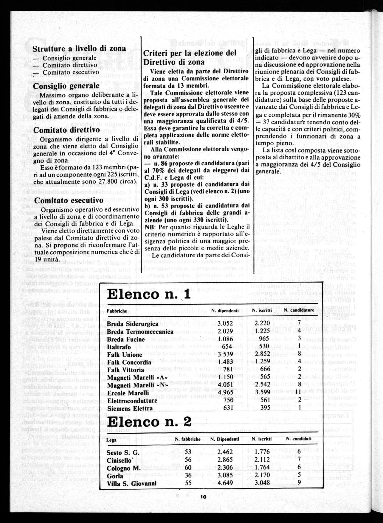 Esso costituirà il momento conclusivo del rinnovo di tutte le strutture della Flm (Consigli di fabbrica, cinque Consigli di lega: Cinisello, Cologno Monzese, Gorla, Villa S. Giovanni, Sesto S. Giovanni).