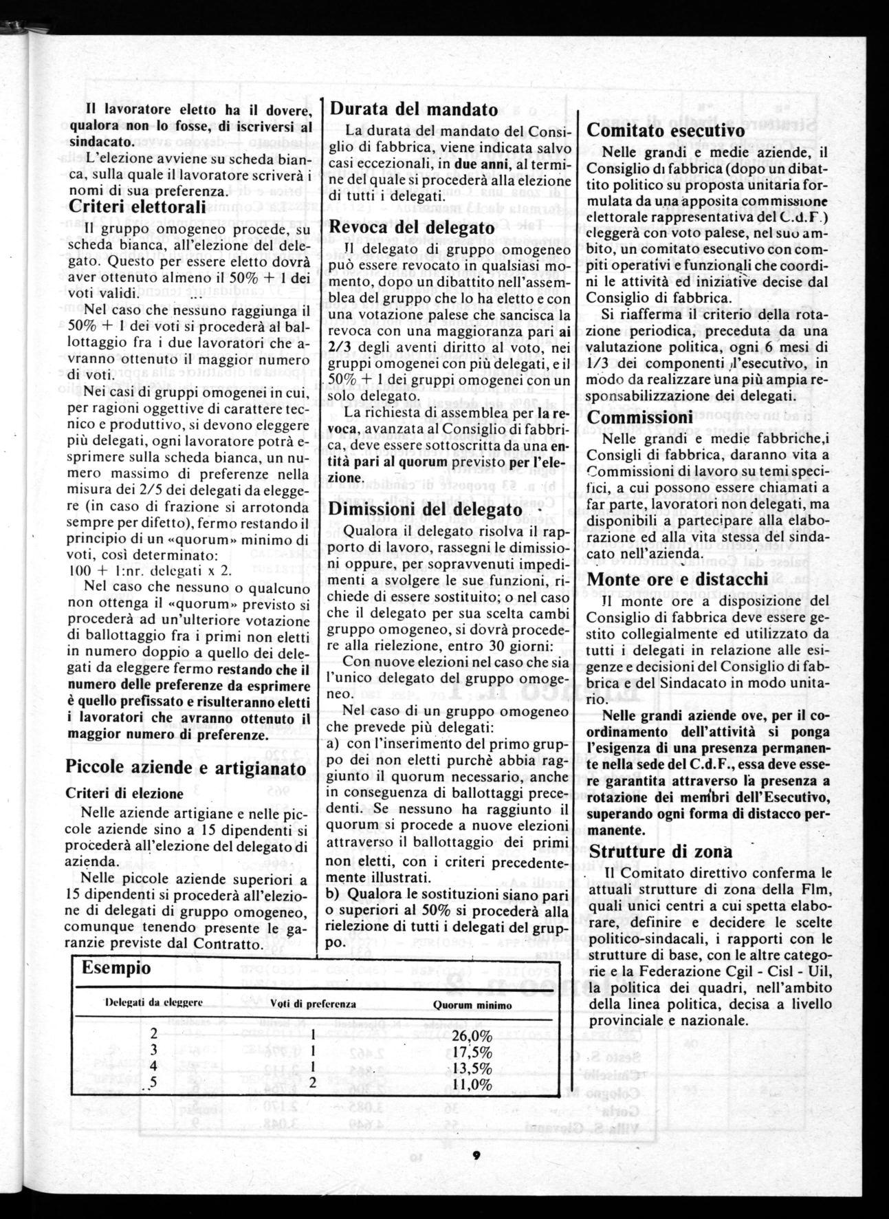 Nelle grandi e medie aziende, il Consiglio di fabbrica (dopo un dibattito politico su proposta unitaria formulata da una apposita commissione elettorale rappresentativa del C.d.F.) eleggerà con voto palese, nel suo ambito, un comitato esecutivo con compiti operativi e funzionali che coordini le attività ed iniziative decise dal Consiglio di fabbrica.
