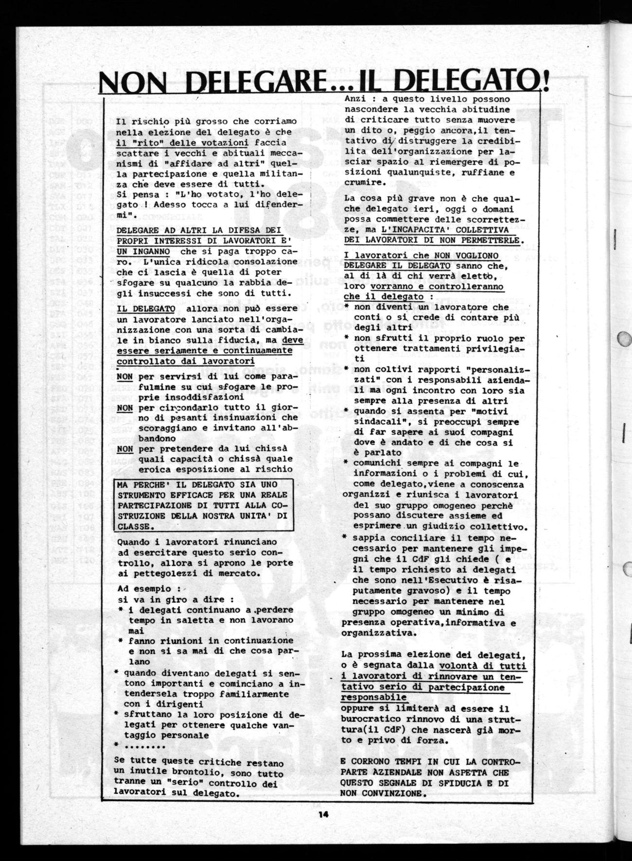 Risulta chiard che l'a.ttacco :Ad,"cnale è volto al ridimensionamento del sindacato nelle sue diverse articolazioni, ma soprat to nelle strutture di base, il Consiglio di Fabbrica, il Delegato.