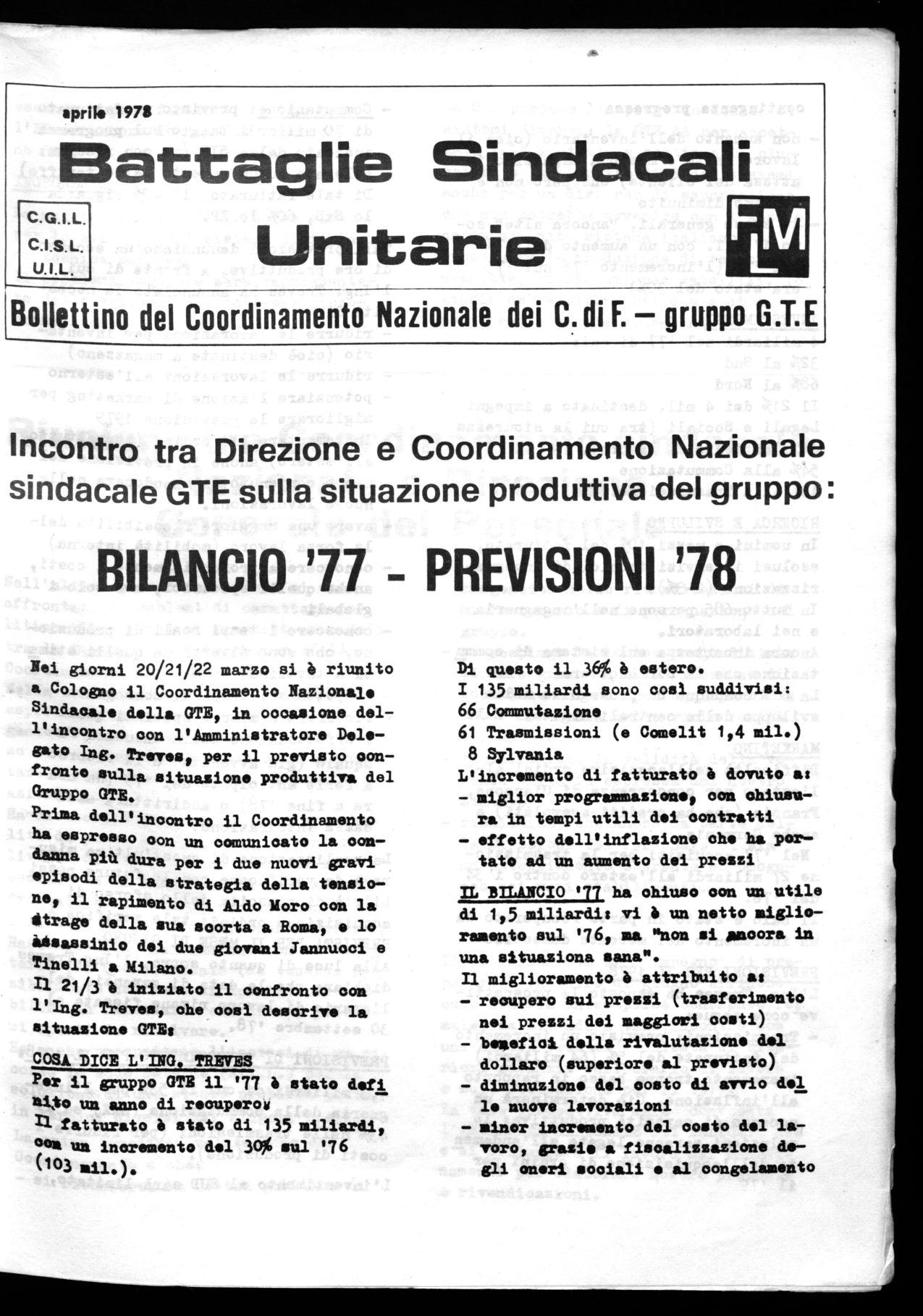 Nei giorni 20/21/22 marzo ai è riunito a Cologno il Coordinamento Nazionali, Sindacale della GTE, in occasione dell'incontro con l'Amministratore Delegato Ing. Trovo% per il previsto confronto sulla situazione produttiva del Gruppo GTE.