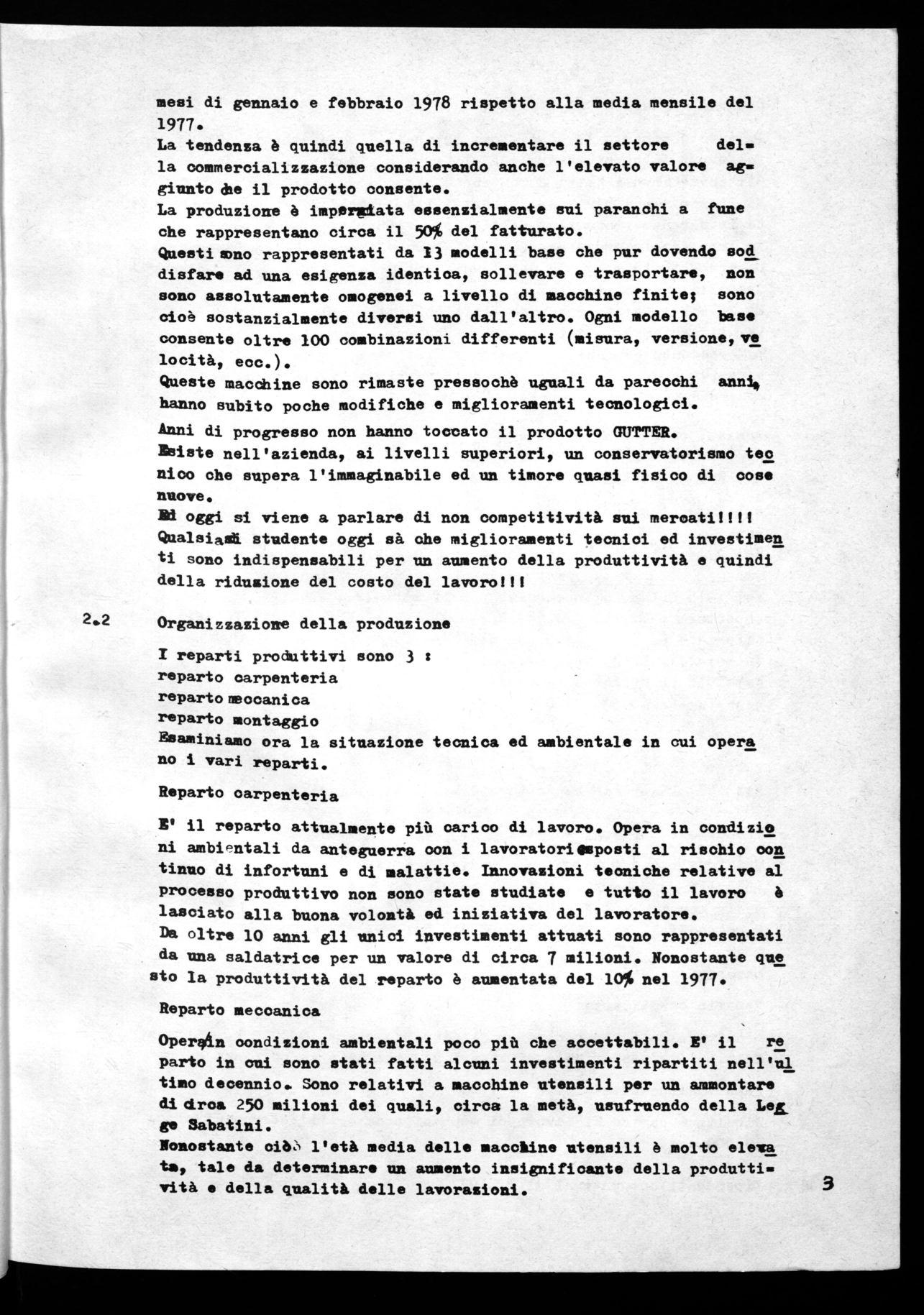 Tutti gli interventi suggeriti dai lavoratori per migliorare la situazione aziendale sono caduti nel nulla L'ammovdenamento delle attrezzature esistenti e la realizzazio ne di nuove attrezzature che comportano una riduzione dei teme. pi di lavoro migliorando la qualità del prodotto
