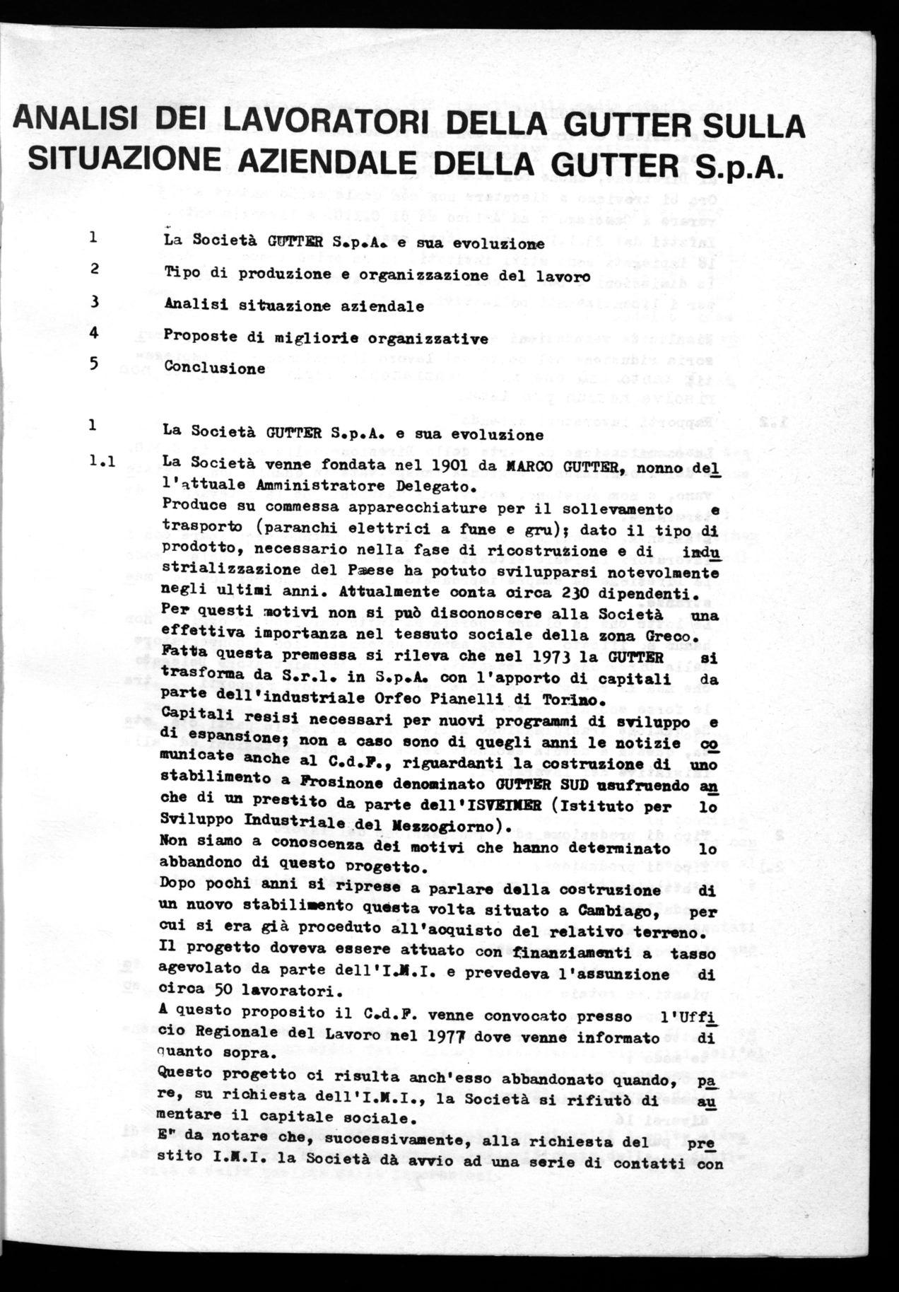 ANALISI DEI LAVORATORI DELLA GUTTER SULLA SITUAZIONE AZIENDALE DELLA GUTTER S.p.A.