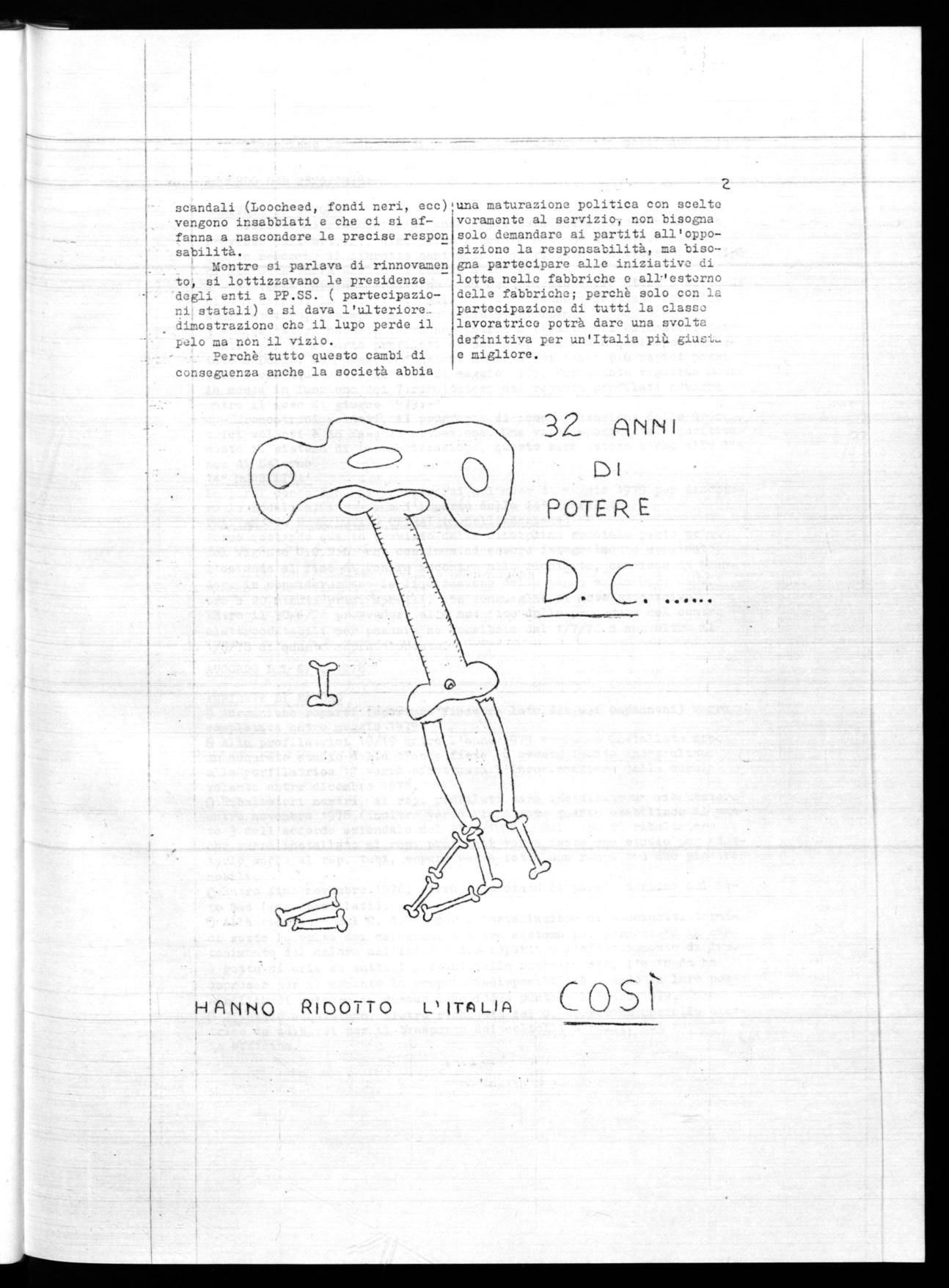 una maturazione politica con scelte veramente al servizio-, non bisogna solo demandare ai partiti all'opposizione la responsabilità, ma bisogna partecipare alle iniziative di lotta nelle fabbriche e all'esterno delle fabbriche; perchè solo con la partecipazione di tutti la classe lavoratrice potrà dare una svolta definitiva per un'Italia più e migliore,