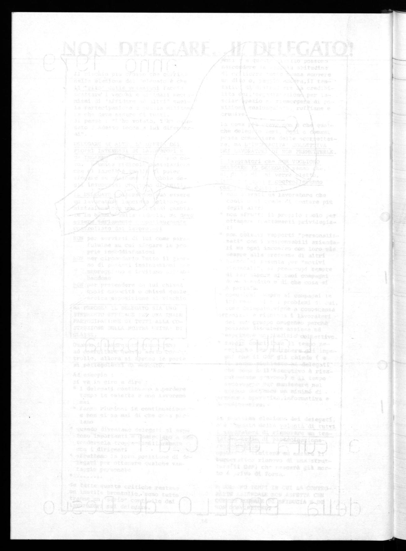 Facciamo appello a tutti i lavoratori per denunciare tutti i si- sterni di lavoro che possono essere pericolosi avvertendo di ciò i delegati di reparto, i capi gruppo e il capo reparto, senza accettare troppo facilmente lavori rischiosi che possono creare l'infortunio.