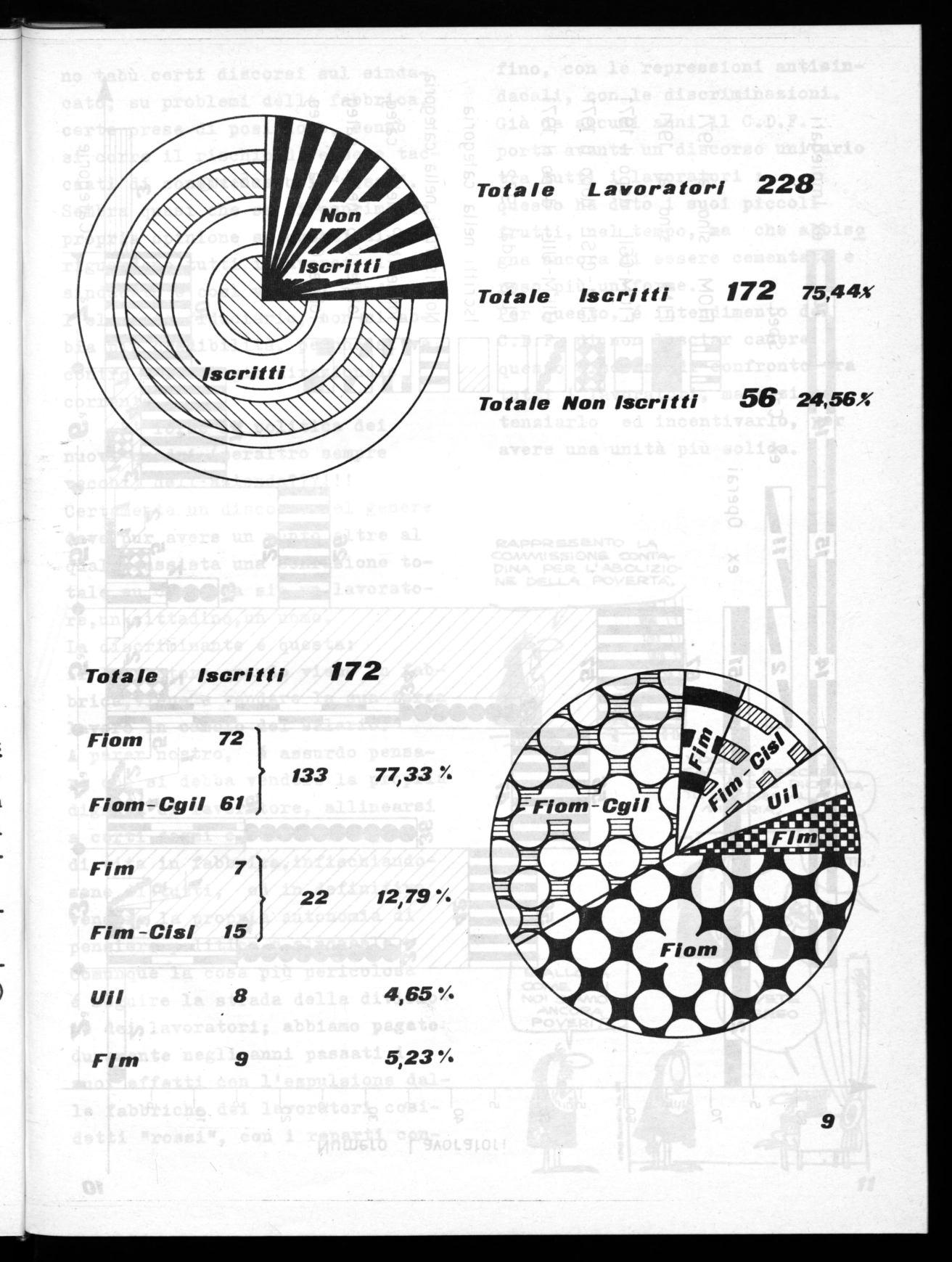 Totale Lavoratori 228 Totale Iscritti 172 75,44X Totale Non Iscritti 56 24,56X Totale Iscritti 172 } Fiom 72 Fiom-Cgil 61 133 77,33% Fim-Cisl 15 } */. Fím 7 22 12,79 1111 8 4,65% Flm 9 5,23% 9