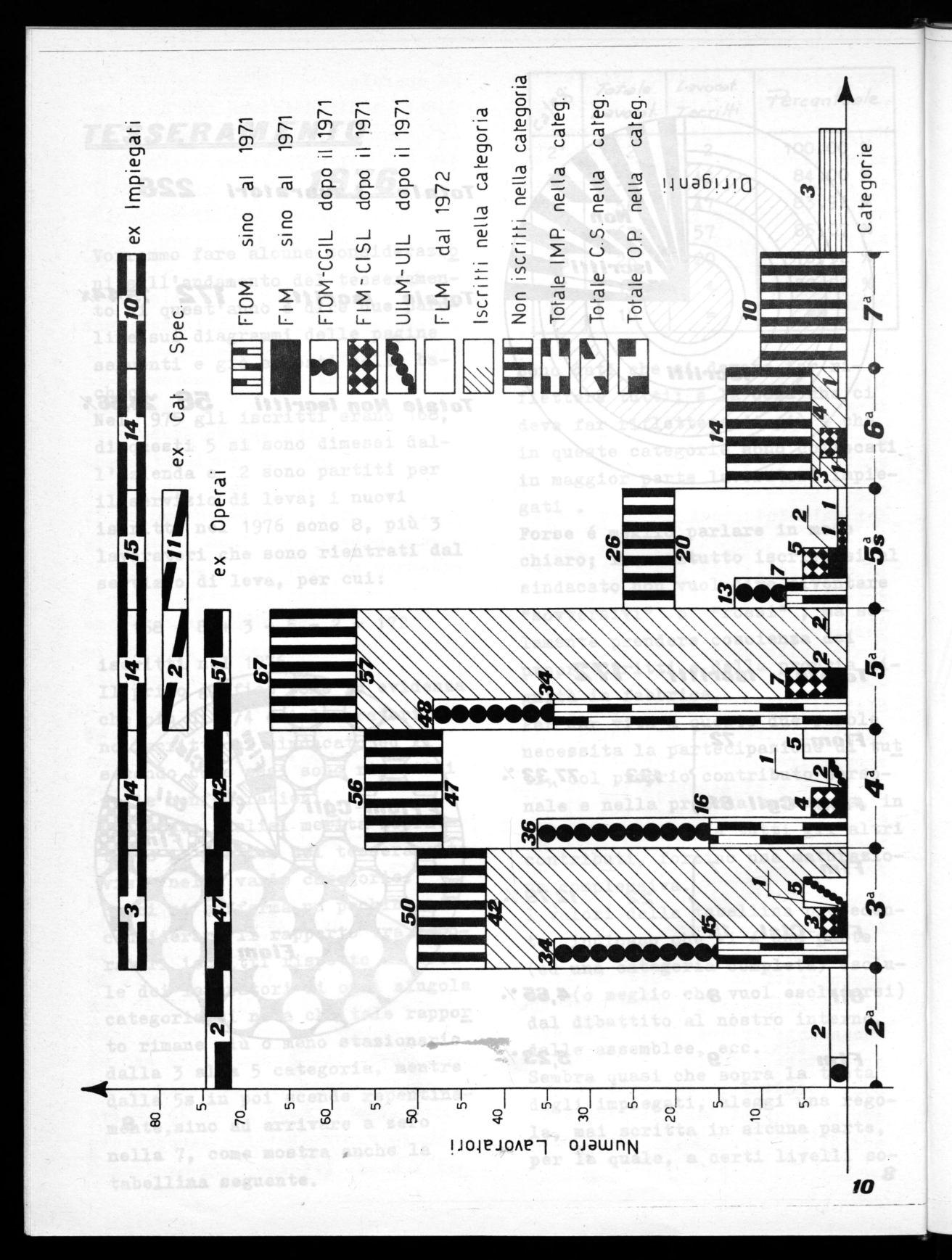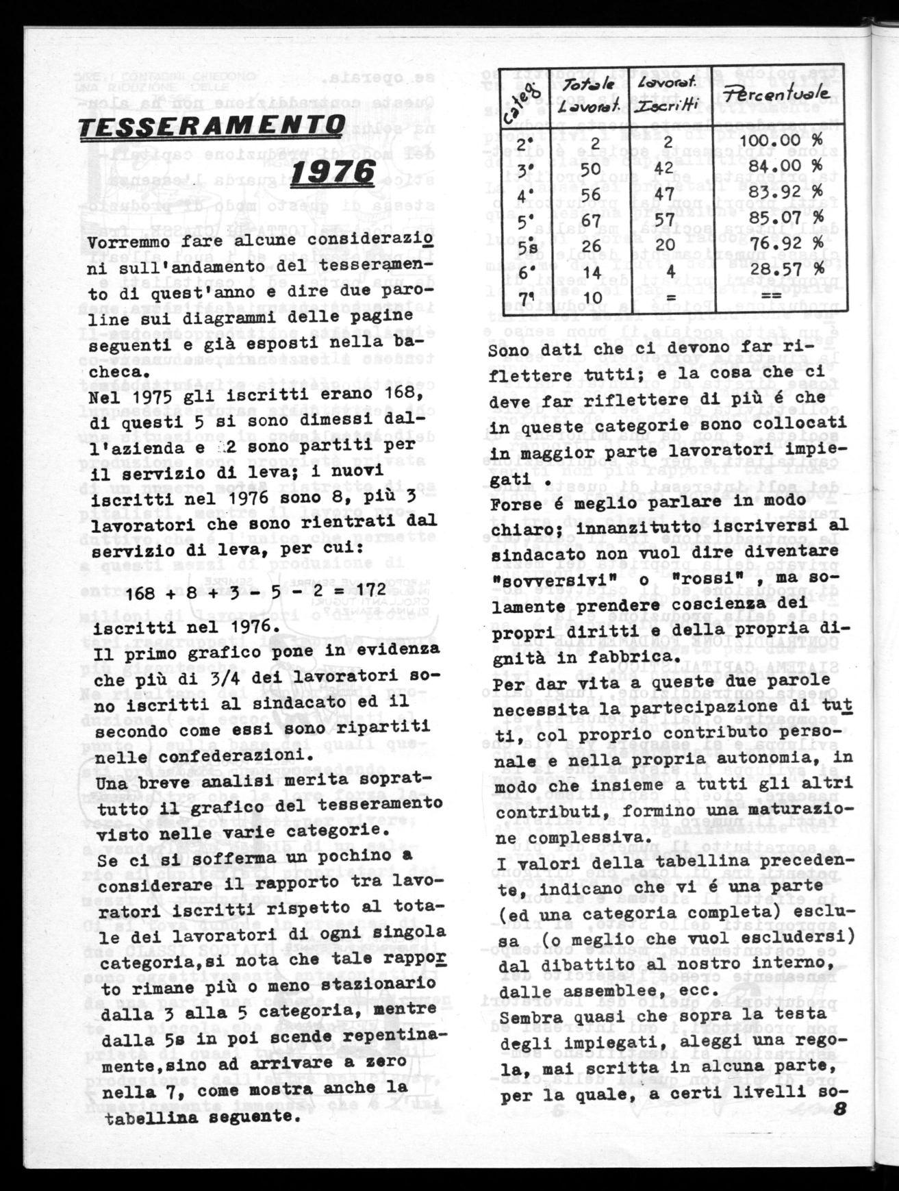 Nel 1975 gli iscritti erano 168, di questi 5 si sono dimessi dall'azienda e .2 sono partiti per il servizio di leva; i nuovi iscritti nel 1976 sono 8, più 3 lavoratori che sono rientrati dal servizio di leva, per cui: