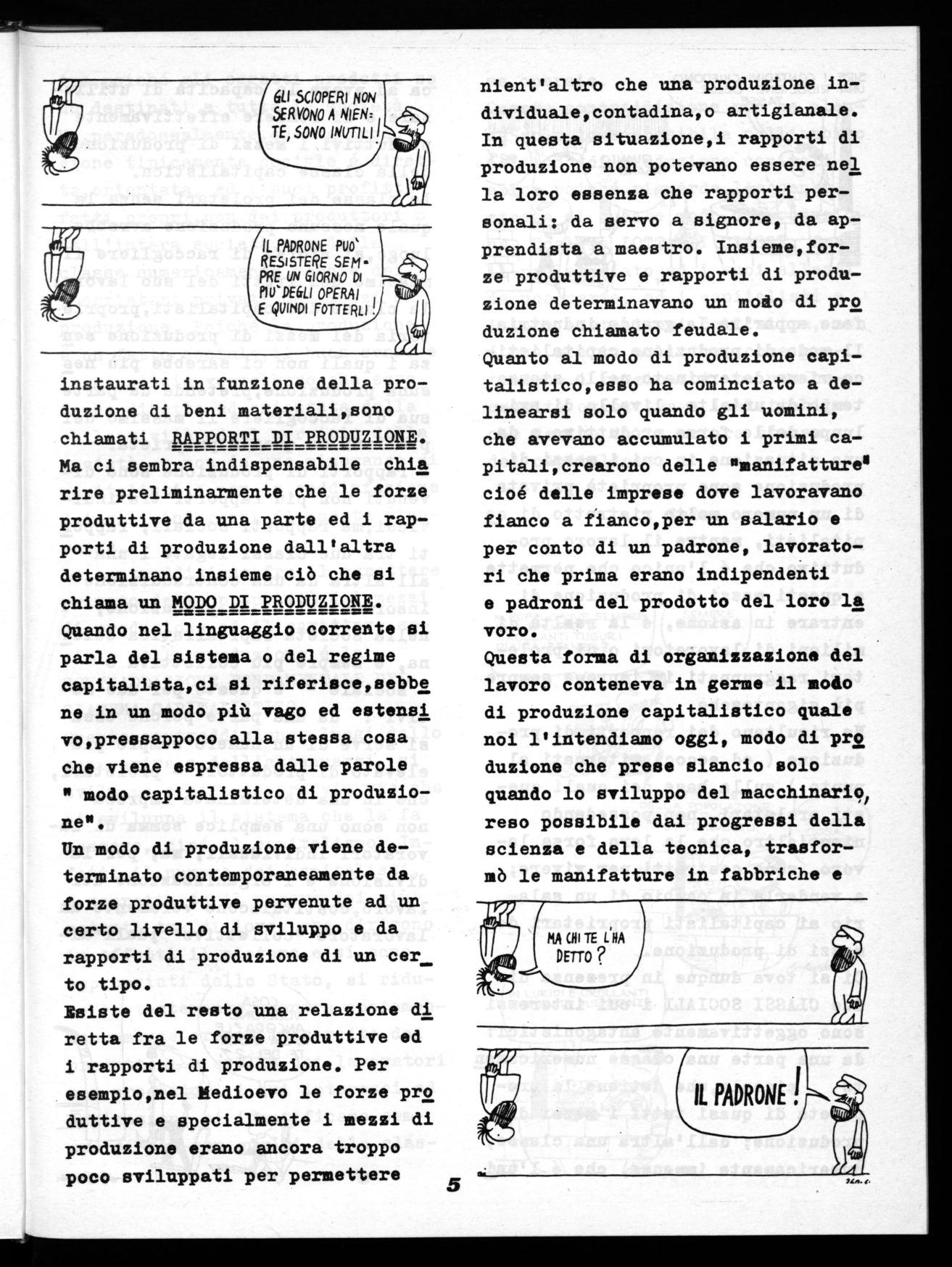 Dopo aver definito sommariamente le forze produttive, dovremmo chiederci quale sia la natura dei rapporti che legano il lavoratore che non dispone che della sua for za lavoro, al capitalista, che, invece, é proprietario di fabbriche con le loro attrezzature ed i loro macchinari e che dispone inoltre di capitali liquidi per acquistare le materie prime e ver sare il salario ai lavoratori.