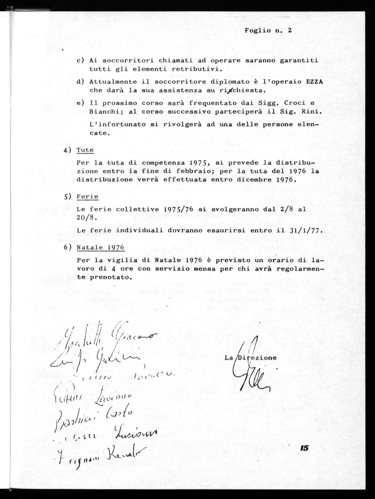 Le ferie collettive 1975/76 si svolgeranno dal 2/8 al 20/8.