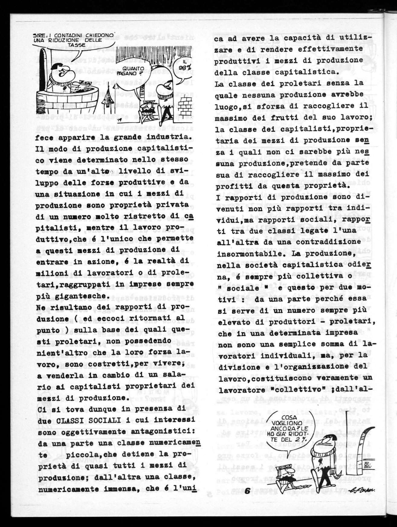 Ci si tova dunque in presenza di due CLASSI SOCIALI i cui interessi sono oggettivamente antagonistici: da una parte una classe numericamen te piccola,che detiene la proprietà di quasi tutti i mezzi di produzione; dall'altra una classe, numericamente immensa, che é l'uni