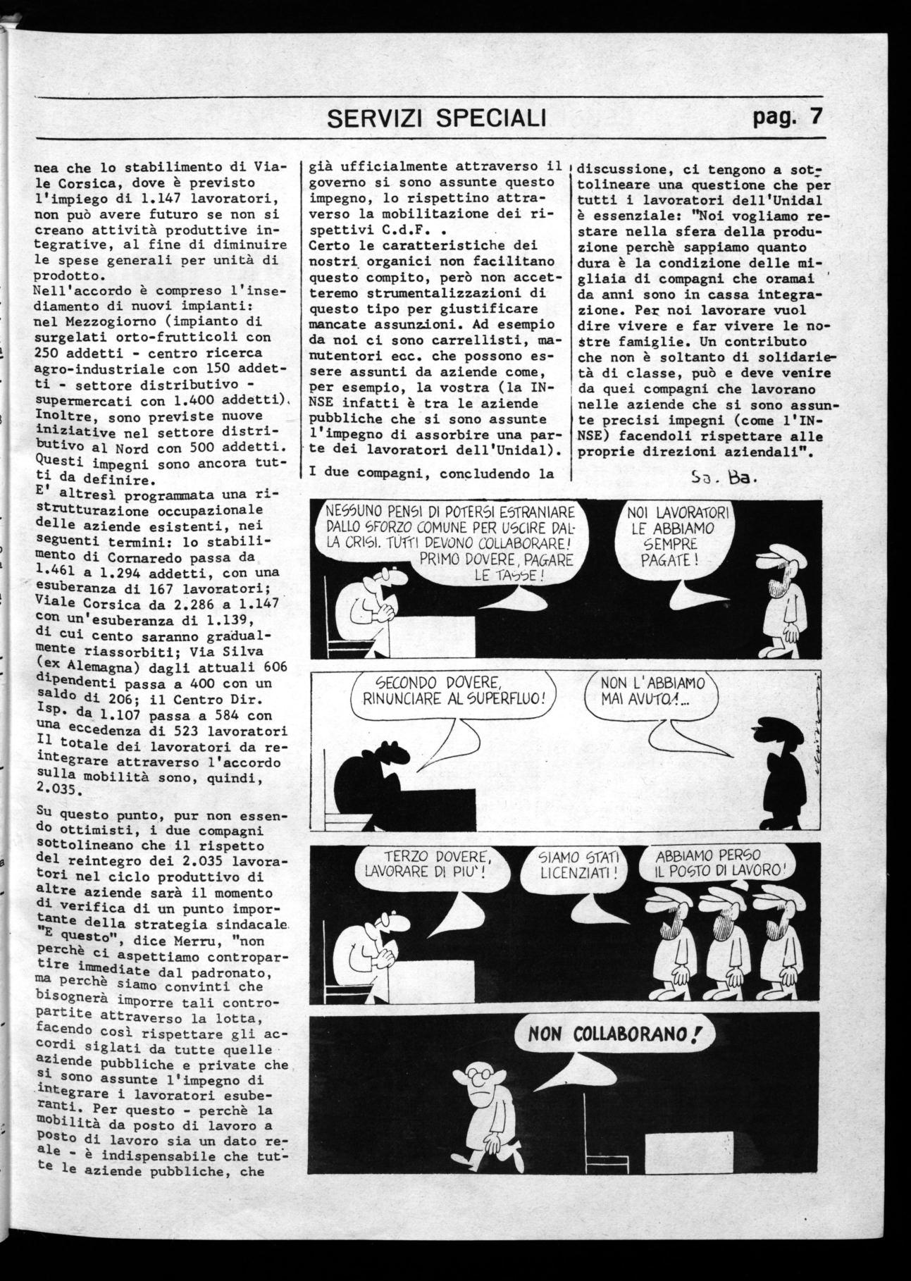 Alla domanda sé corrispondessero al vero le voci secondo le quali la mancata consegna dei pacchi natalizi dello scorso mese di dicembre - prenotati per lo più da industriali grossi, piccoli e medi - fosse conseguenza del tipo di lotta seguito dai lavoratori dell'Unidal, i compagni Franzosi e Merru ci descrivono chiaramente come sono andate le cose: "L'addossamento di tutte le col pe ai lavoratori si costruisce gradatamente con una logica tipicamente padronale. I dirigenti della SME-Unidal hanno incominciato col non rispettare gli impegni da loro assunti (si erano concordati 50 miliardi per razionalizzare la produzione e la distribuzione, la quale ultima era rimasta estremamente carente) e si è continuato col sabotare le forniture.