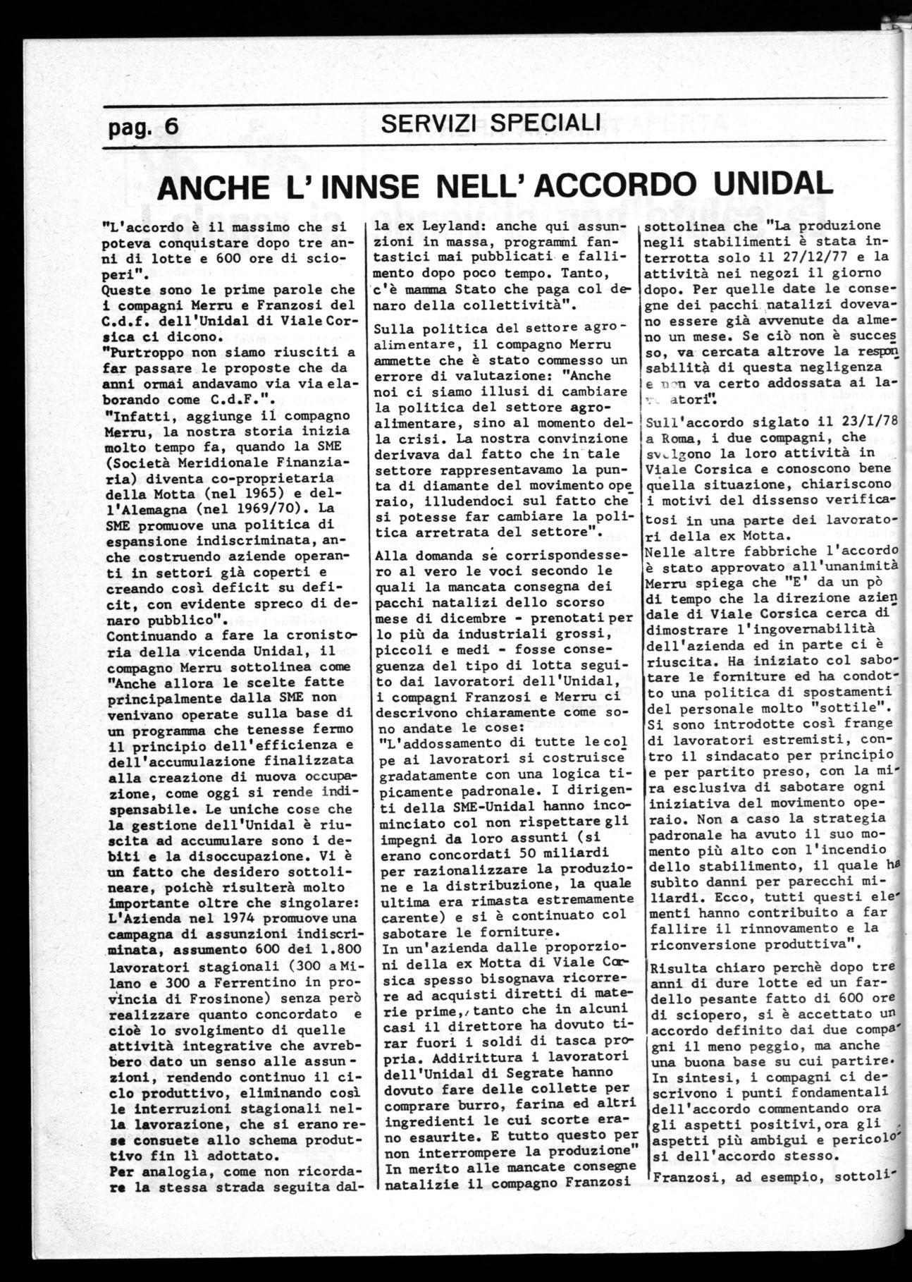 Sull'accordo siglato il 23/1/78 a Roma, i due compagni, che sy.lzono la loro attività in Viale Corsica e conoscono bene quella situazione, chiariscono i motivi del dissenso verificatosi in una parte dei lavoratori della ex Motta.