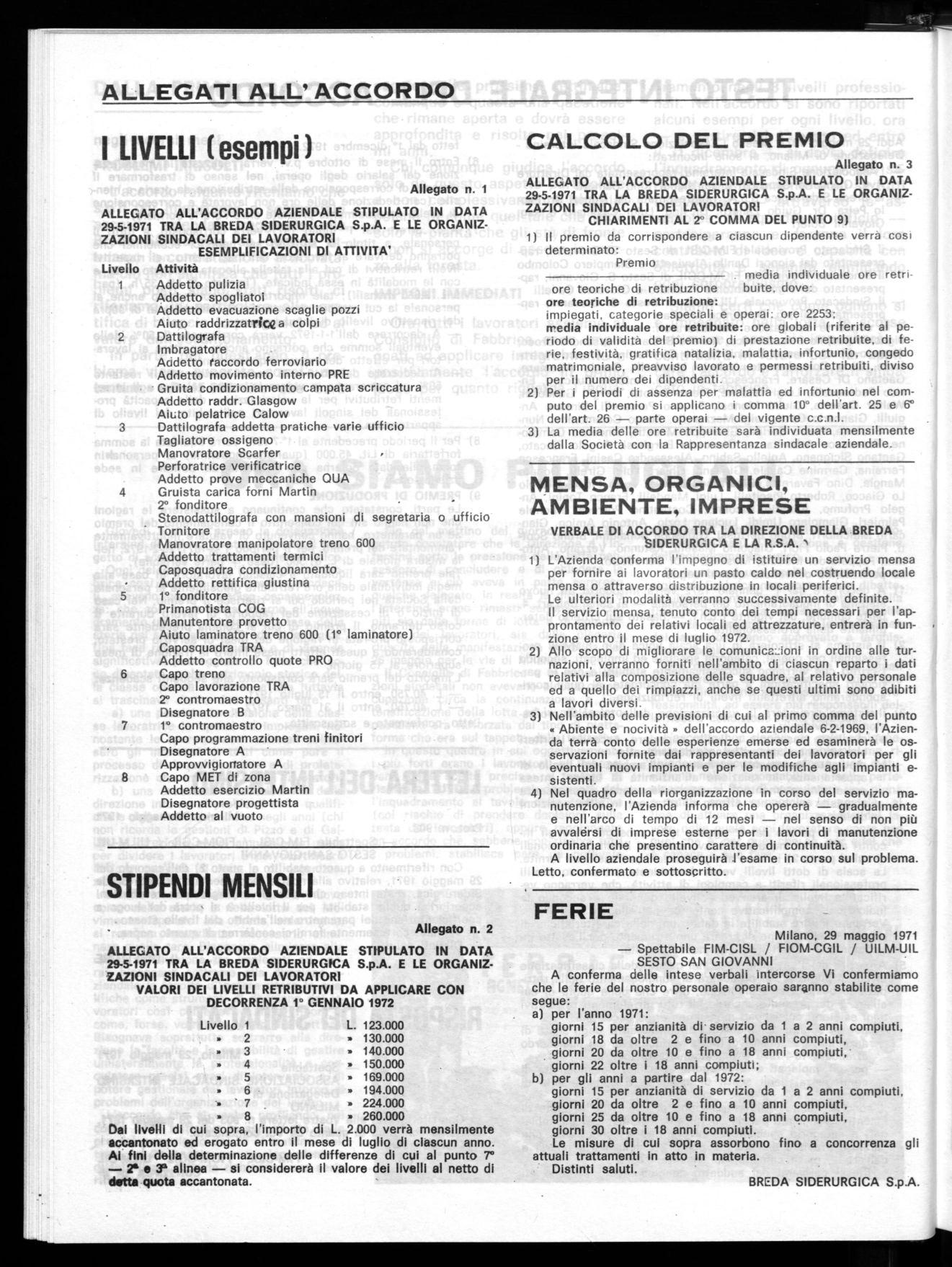 29.5-1971 TRA LA BREDA SIDERURGICA S.p.A. E LE ORGANIZZAZIONI SINDACALI DEI LAVORATORI ESEMPLIFICAZIONI DI ATTIVITA'