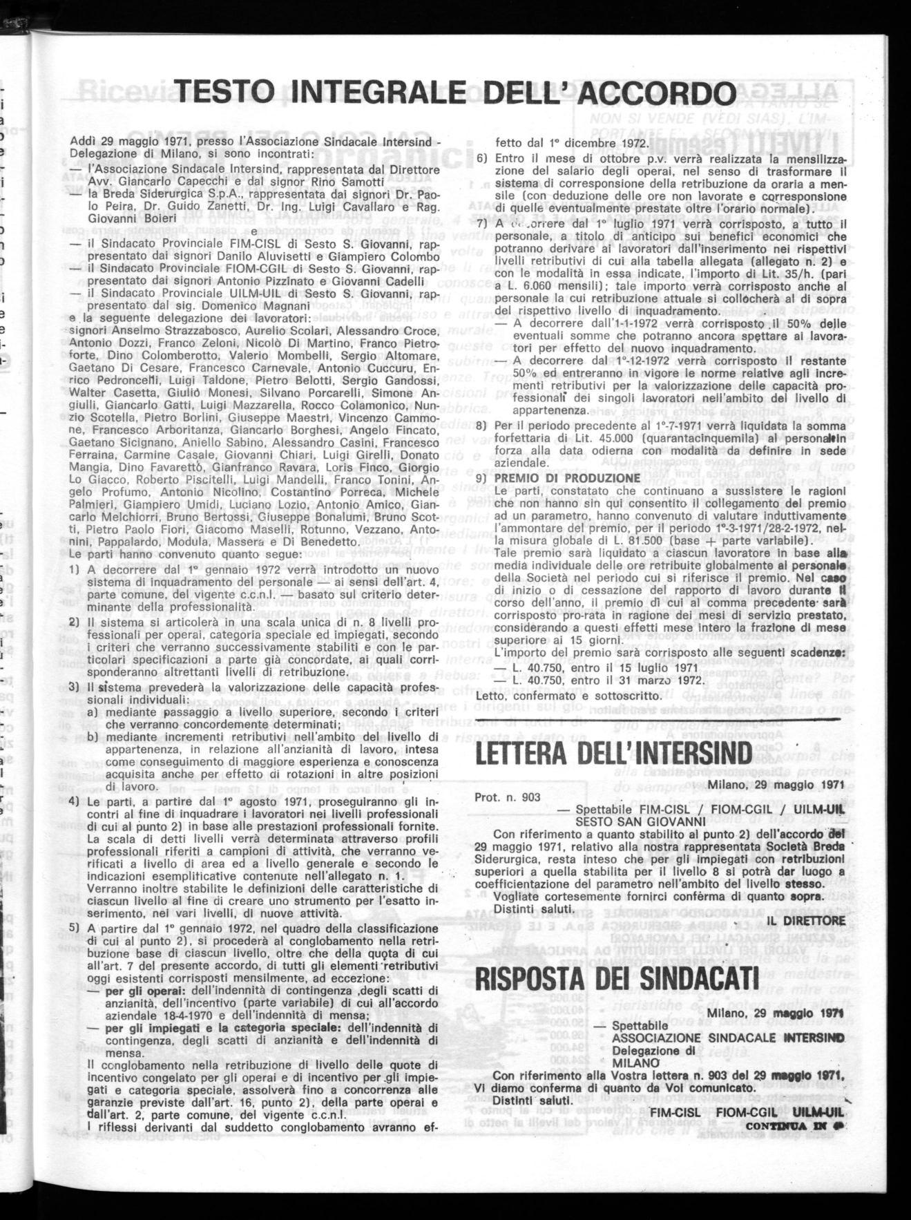Addì 29 maggio 1971, presso l'Associazione Sindacale IntersindDelegazione di Milano, si sono incontrati: