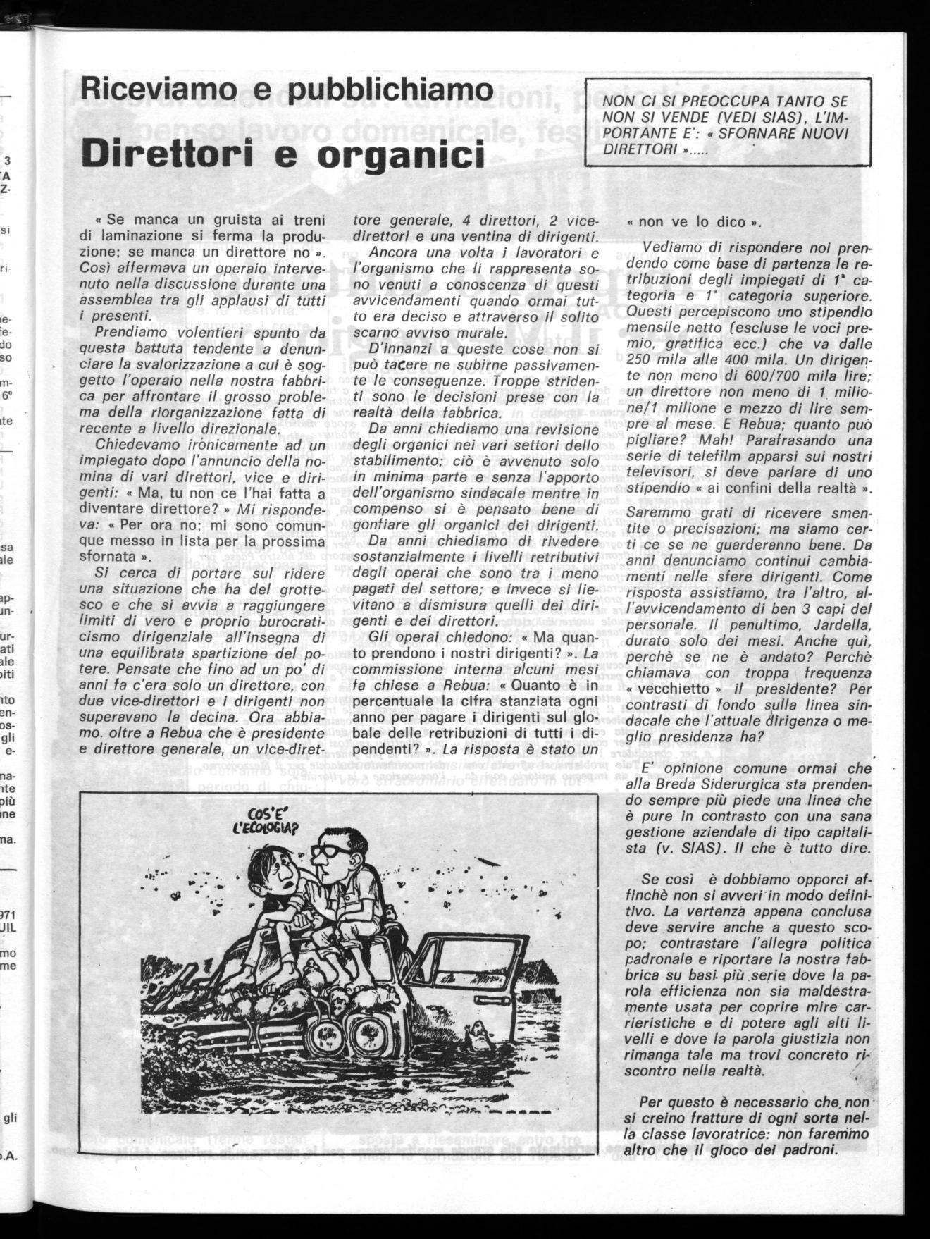 E' opinione comune ormai che alla Breda Siderurgica sta prendendo sempre più piede una linea che è pure in contrasto con una sana gestione aziendale di tipo capitalista (v. SIAS). Il che è tutto dire.