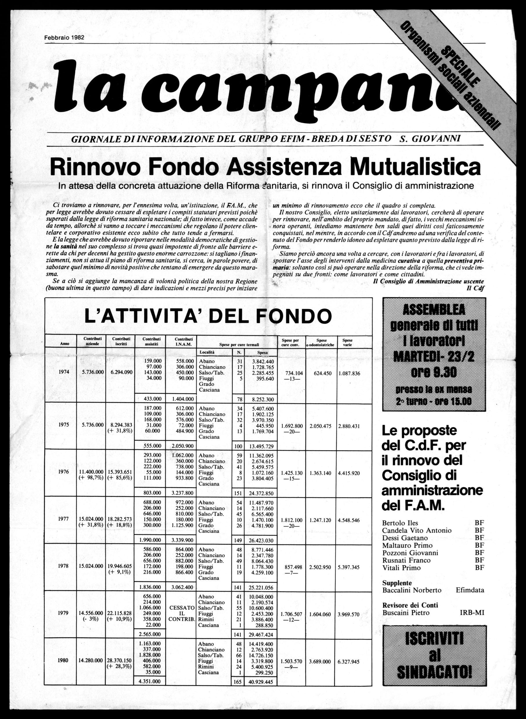 Come annunciato dalle locandine della fondazione sono convocate il 25 marzo 19821e elezioni per il rinnovo della Fondazione Ernesto Breda.