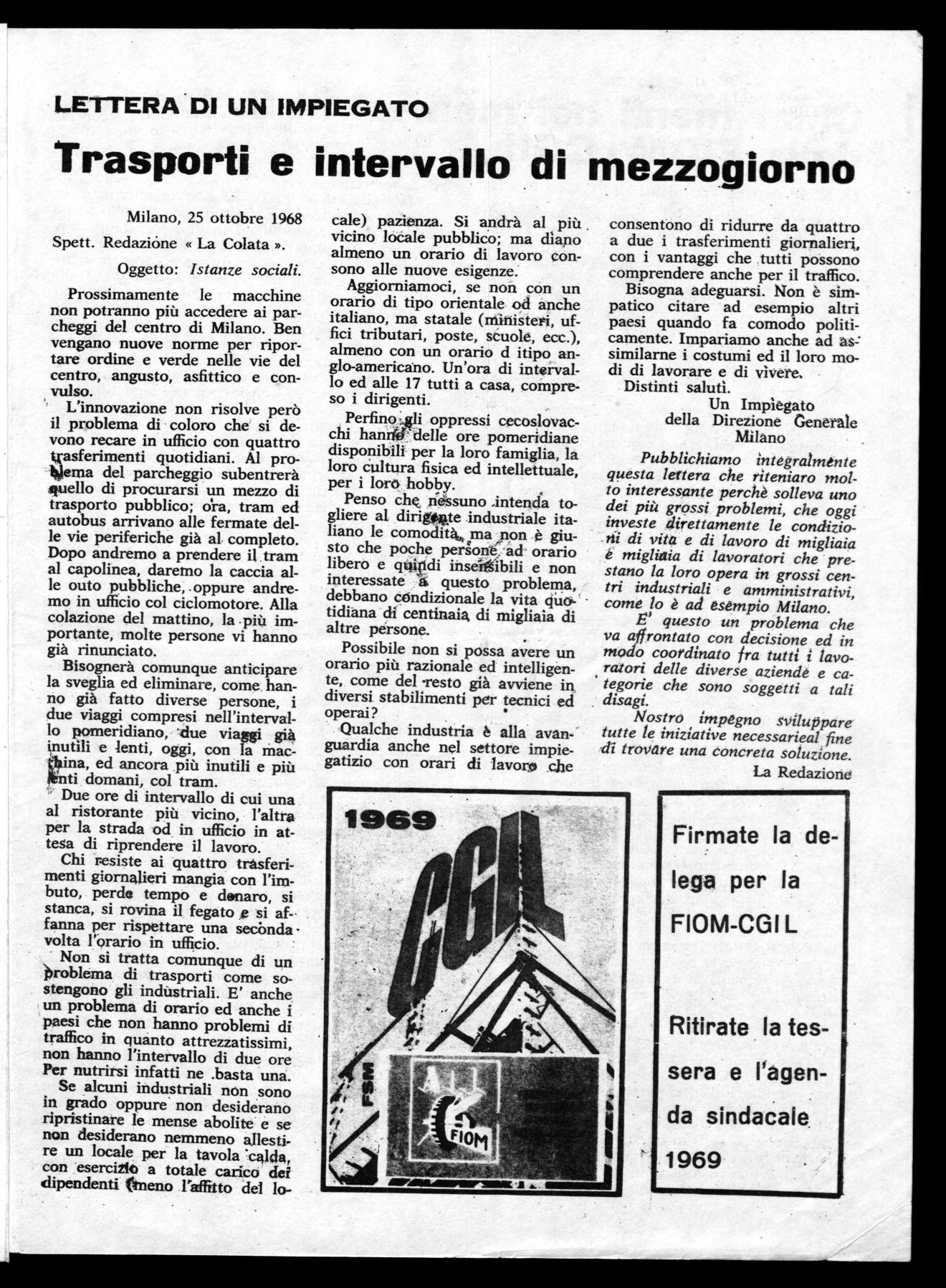 Pubblichiamo integralmente questa lettera che riteniaro molto interessante perchè solleva uno dei più grossi problemi, che oggi investe direttamente le condizioni di vita e di lavoro di migliaia é migliaia di lavoratori che prestano la loro opera in grossi centri industriali e amministrativi, come lo è ad esempio Milano.