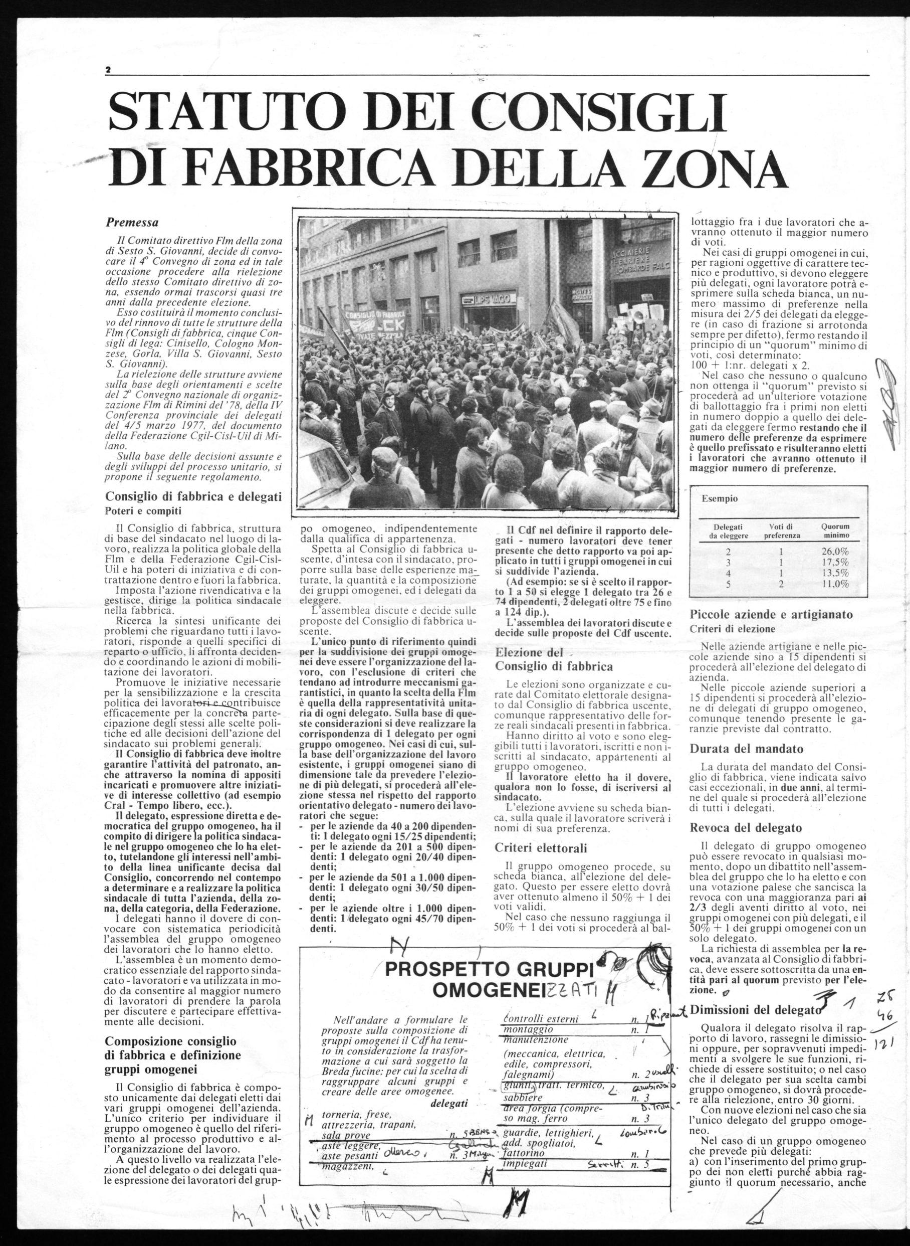 Esso costituirà il momento conclusivo del rinnovo di tutte le strutture della Flm (Consigli di fabbrica, cinque Consigli di lega: Cinisello, Cologno Monzese, Gorla, Villa S. Giovanni, Sesto S. Giovanni).