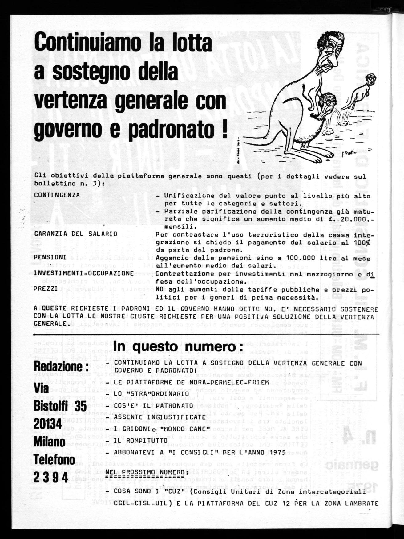 A QUESTE RICHIESTE I PADRONI ED IL GOVERNO HANNO DETTO NO. E' NECESSARIO SOSTENERE CON LA LOTTA LE NOSTRE GIUSTE RICHIESTE PER UNA POSITIVA SOLUZIONE DELLA VERTENZA GENERALE.