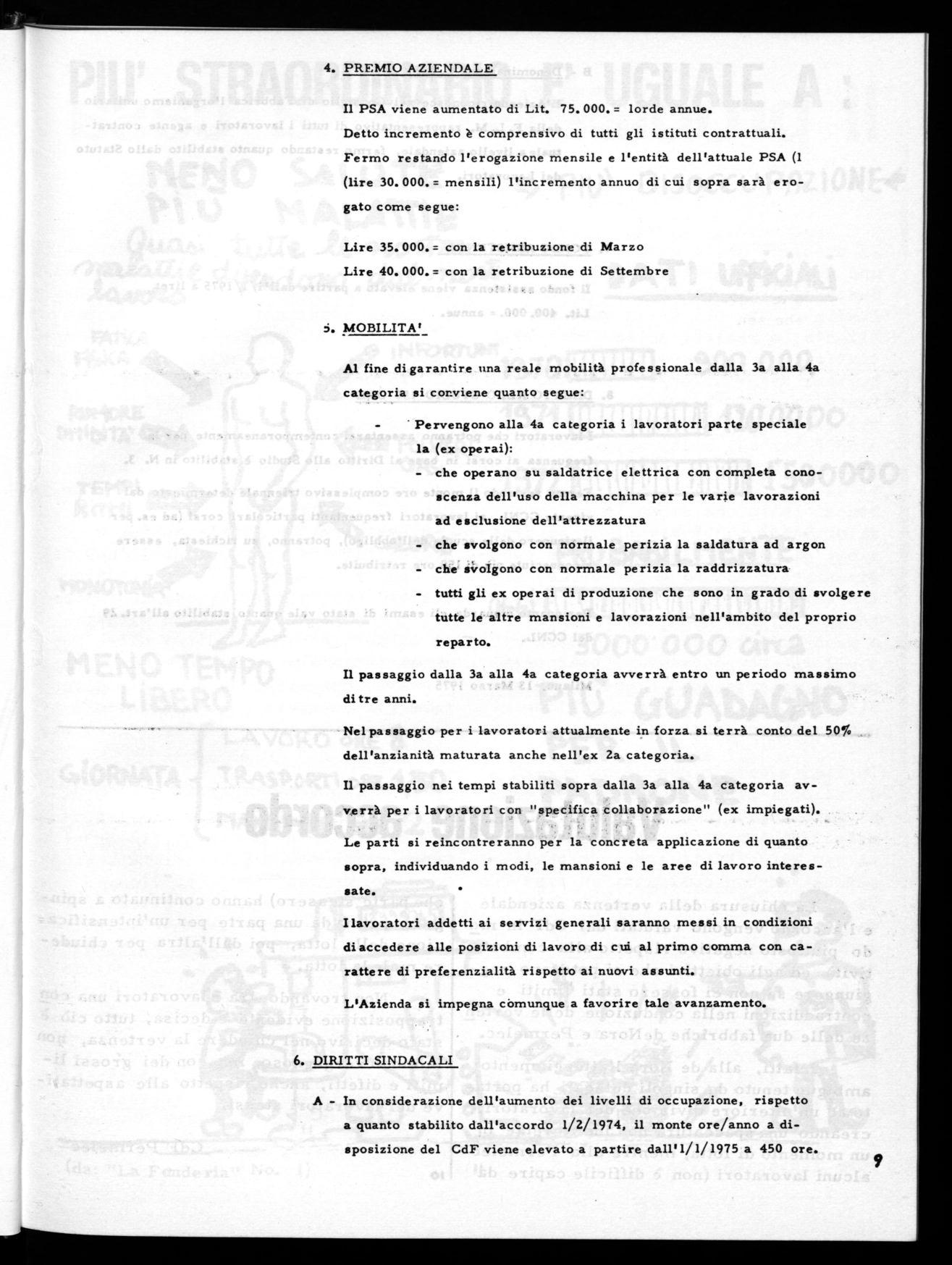 9.1 Fermo restando quanto stabilito dall'accordo 14.2.1974 punto 12 l'Azienda verificherà un incremento della quota entro il 30.6.1975 .