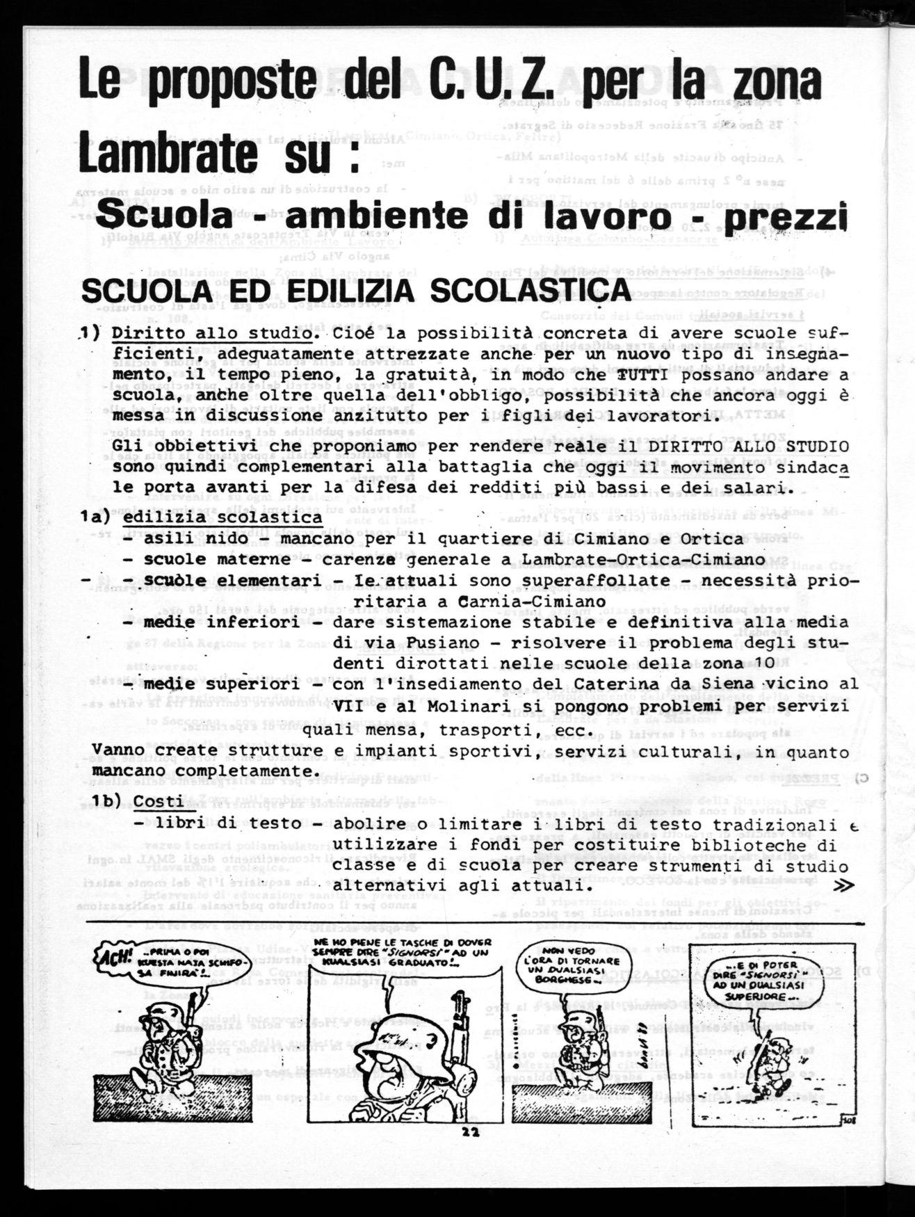 Le proposte del C. U. Z. per la zona Lambrate su Scuola ambiente di lavoro - prezzi SCUOLA ED EDILIZIA SCOLASTICA