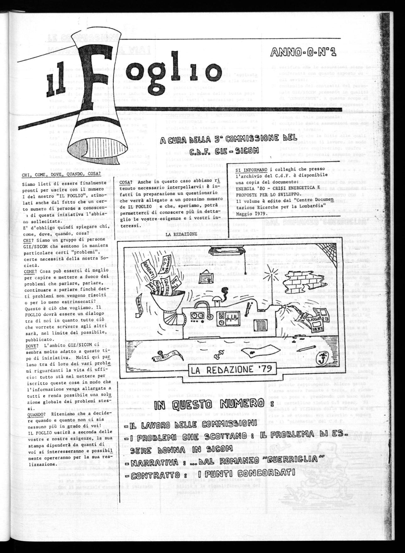 COMMISSIONE N. 5 - INFORMAZIONE E CULTURA - La commissione intende operare nel nostro contesto affinché esistano momenti reali di confronto, di dialogo, di crescita culturale e nello stesso tempo portare una informazione omogenea di tutto quanto riguarda i problemi e la vita nei va ri settori della nostra Azienda. A tale proposito si stanno mettendo a punto gli strumenti adatti al raggiungimento di questo obiettivo: un giornaletto periodico, volantini, incontri su tematiche culturali, ecc.
