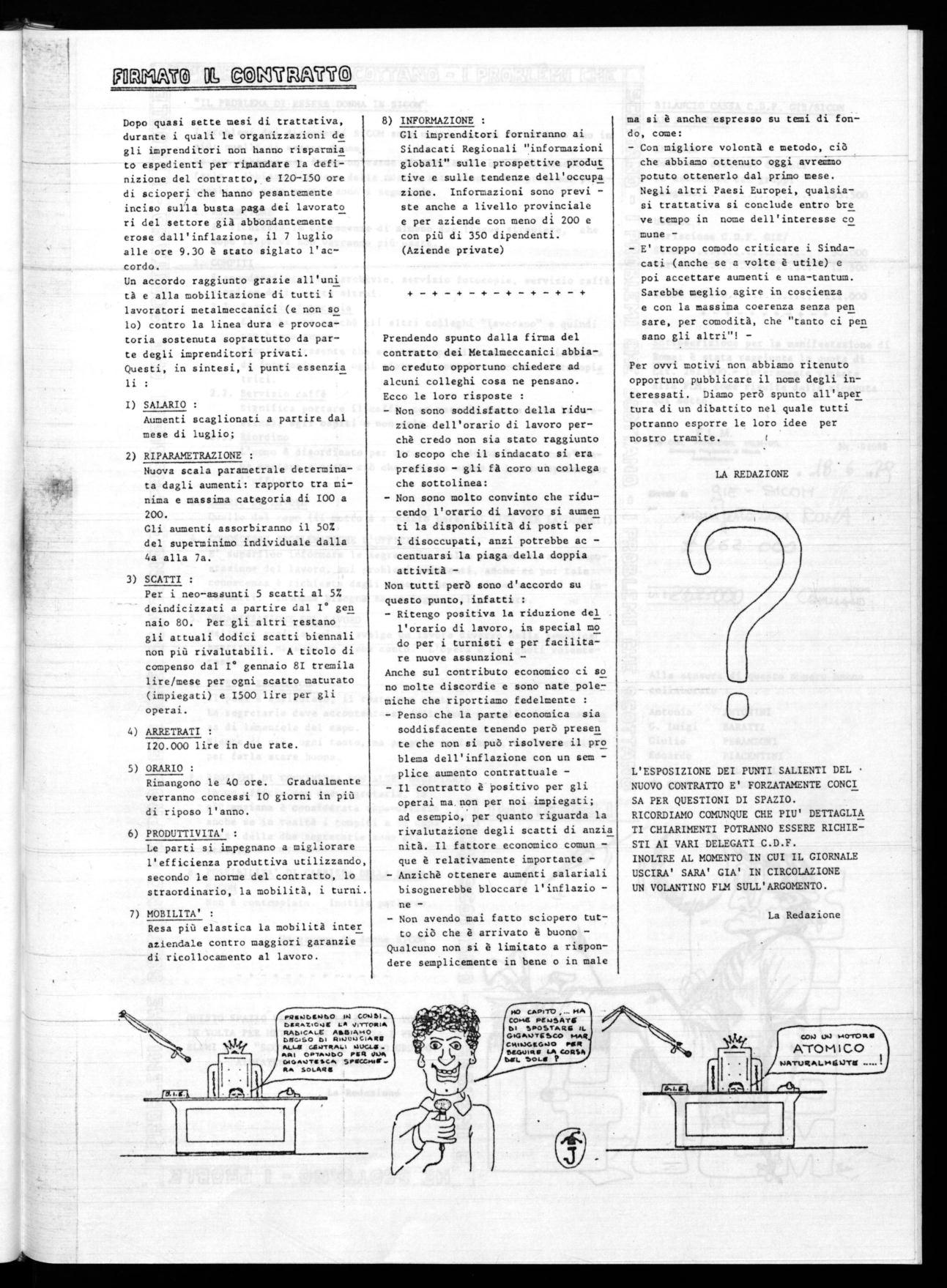 RICORDIAMO COMUNQUE CHE PIU' DETTAGLIA TI CHIARIMENTI POTRANNO ESSERE RICHIESTI AI VARI DELEGATI C.D.F. INOLTRE AL MOMENTO IN CUI IL GIORNALE USCIRA' SARA' GIA' IN CIRCOLAZIONE UN VOLANTINO FLM SULL'ARGOMENTO.