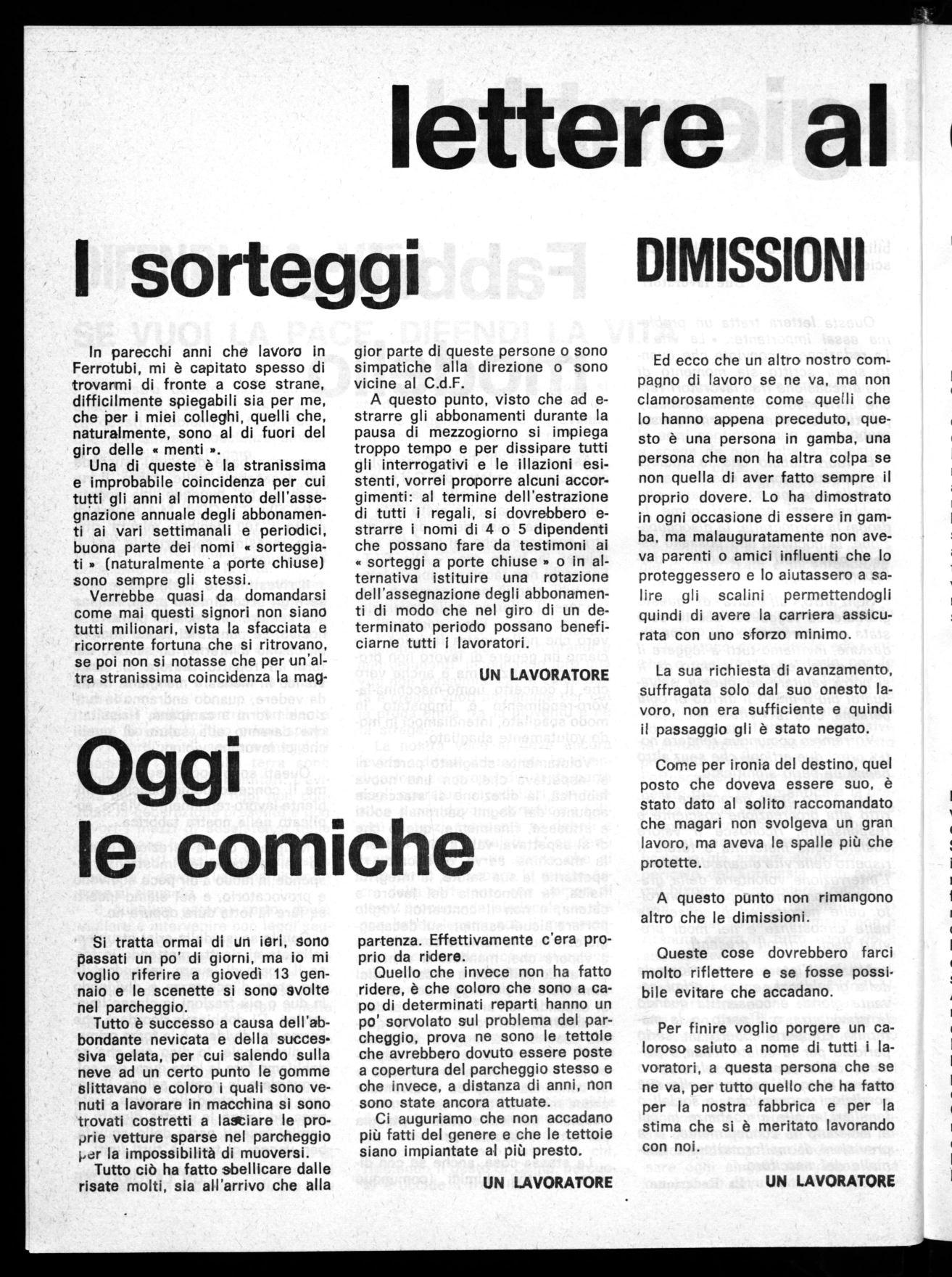 Malgrado ciò la Direzione, quando noi facciamo le rimostranze, risponde in modo a dir poco equivoco e provocatorio, e noi siamo incerti se fare la lotta dura oppure no.