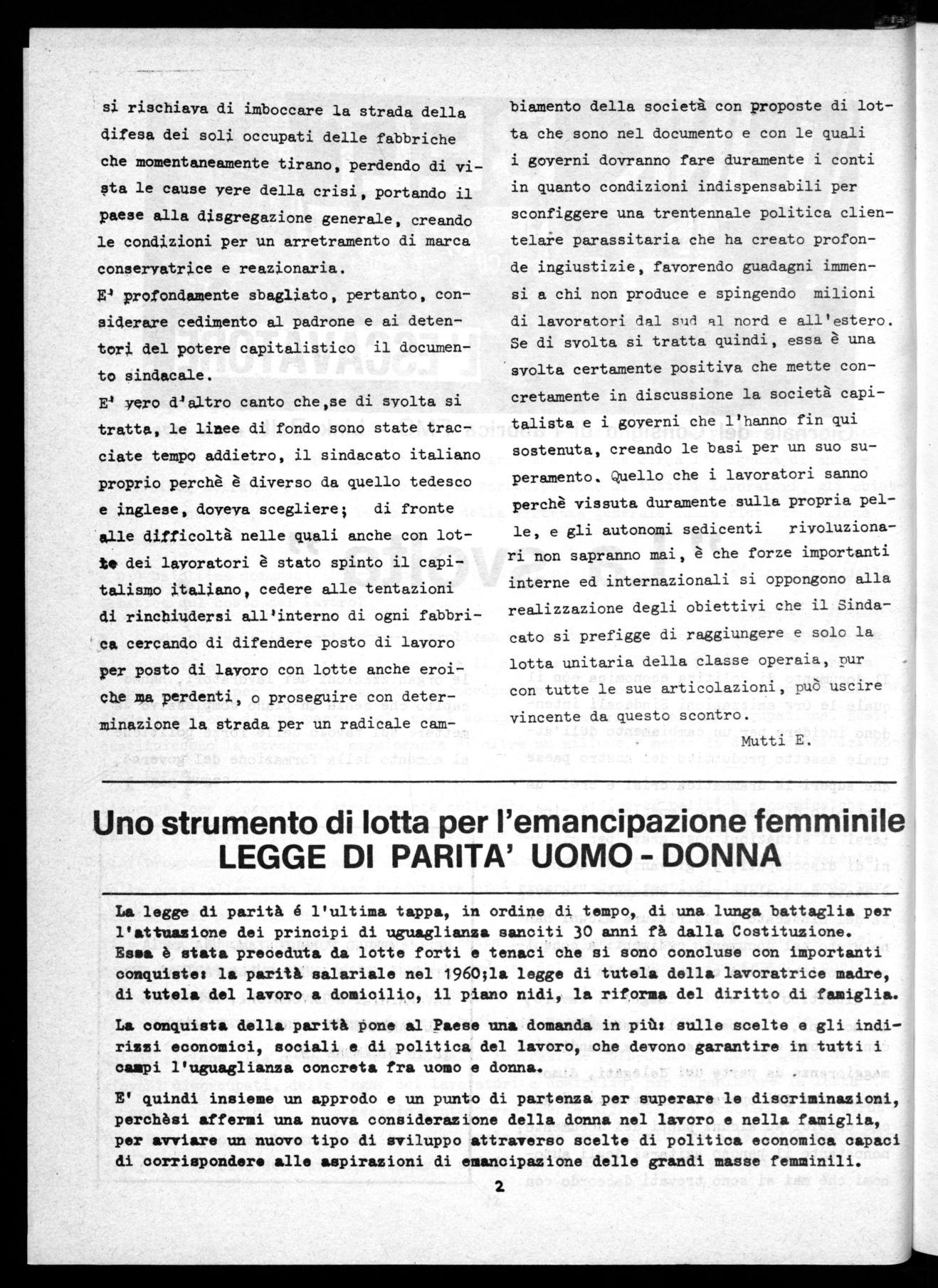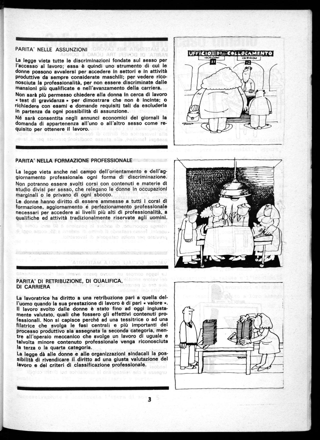 E' quindi insieme un approdo e un punto di partenza per superare le discriminazioni, perchèsi affermi una nuova considerazione della donna nel lavoro e nella famiglia, per avviare un nuovo tipo di sviluppo attraverso scelte di politica economica capaci di corrisponder• alle aspirazioni di emancipazione delle grandi masse femminili.