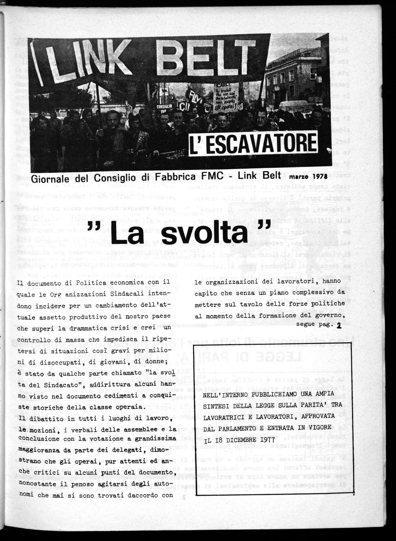 Giornale del Consiglio di Fabbrica FMC - Link Belt marzo 1978