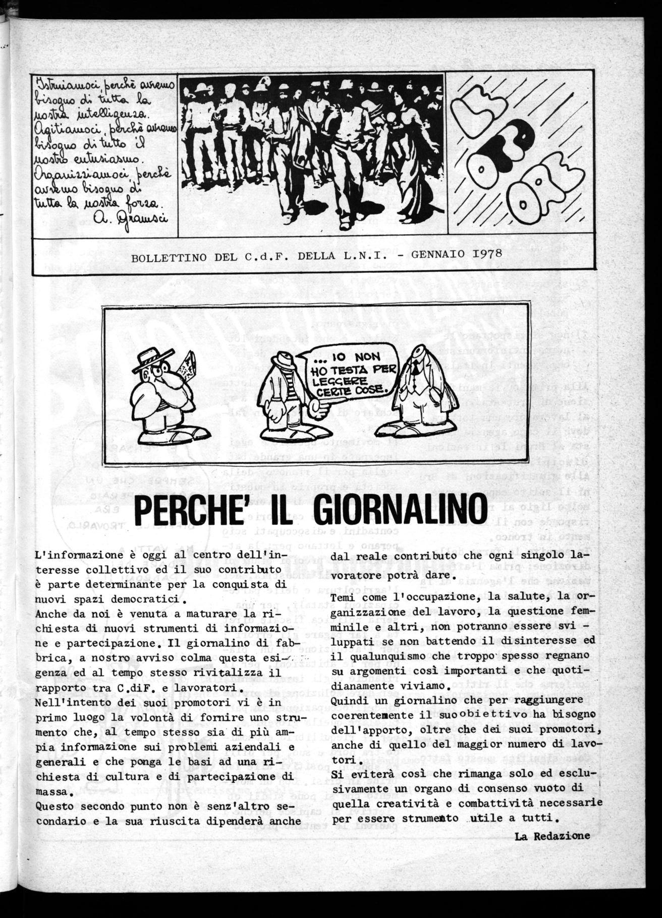 Quindi un giornalino che per raggiungere coerentemente il suoobiettivo ha bisogno dell'apporto, oltre che dei suoi promotori, anche di quello del maggior numero di lavotori.