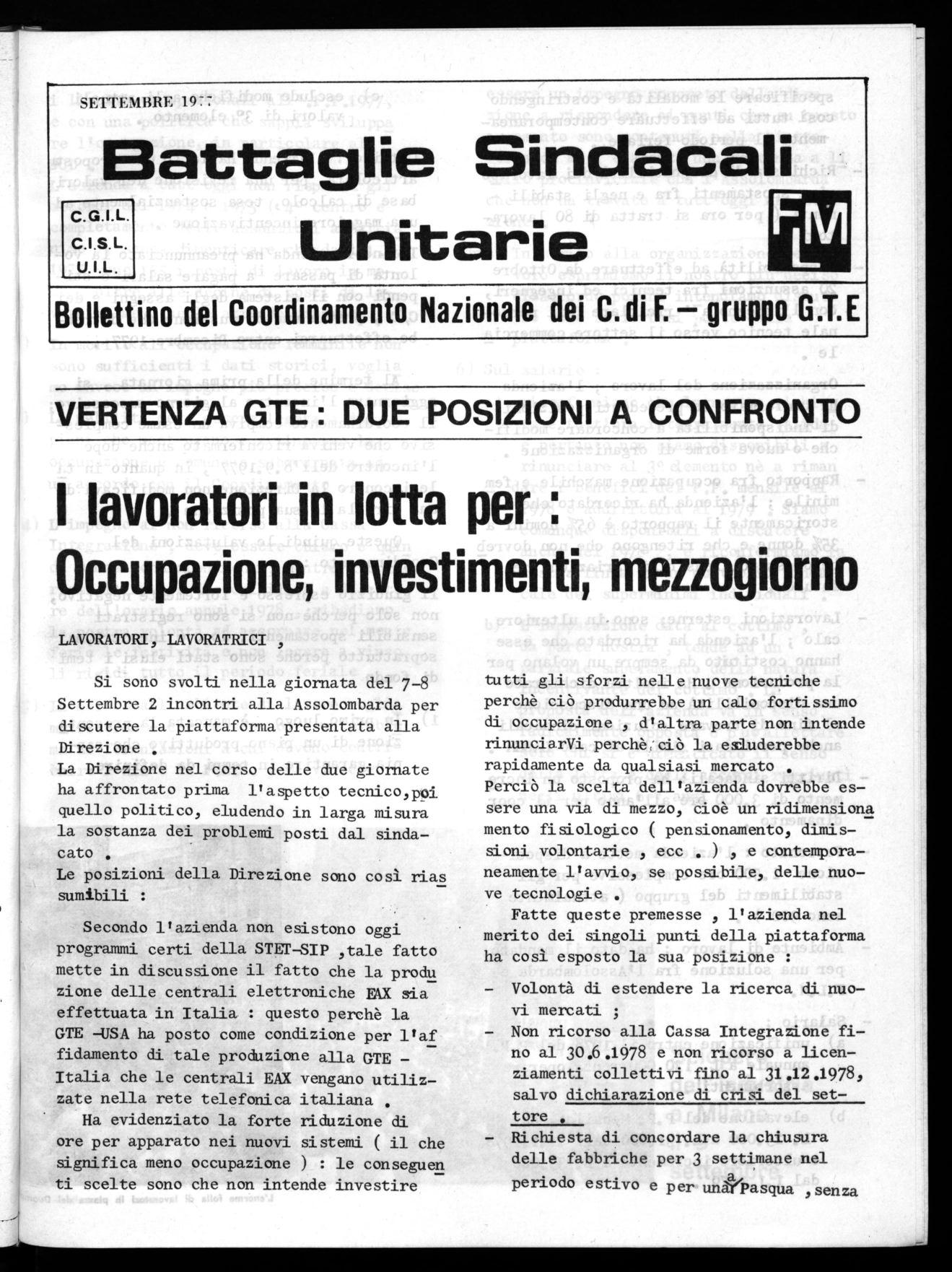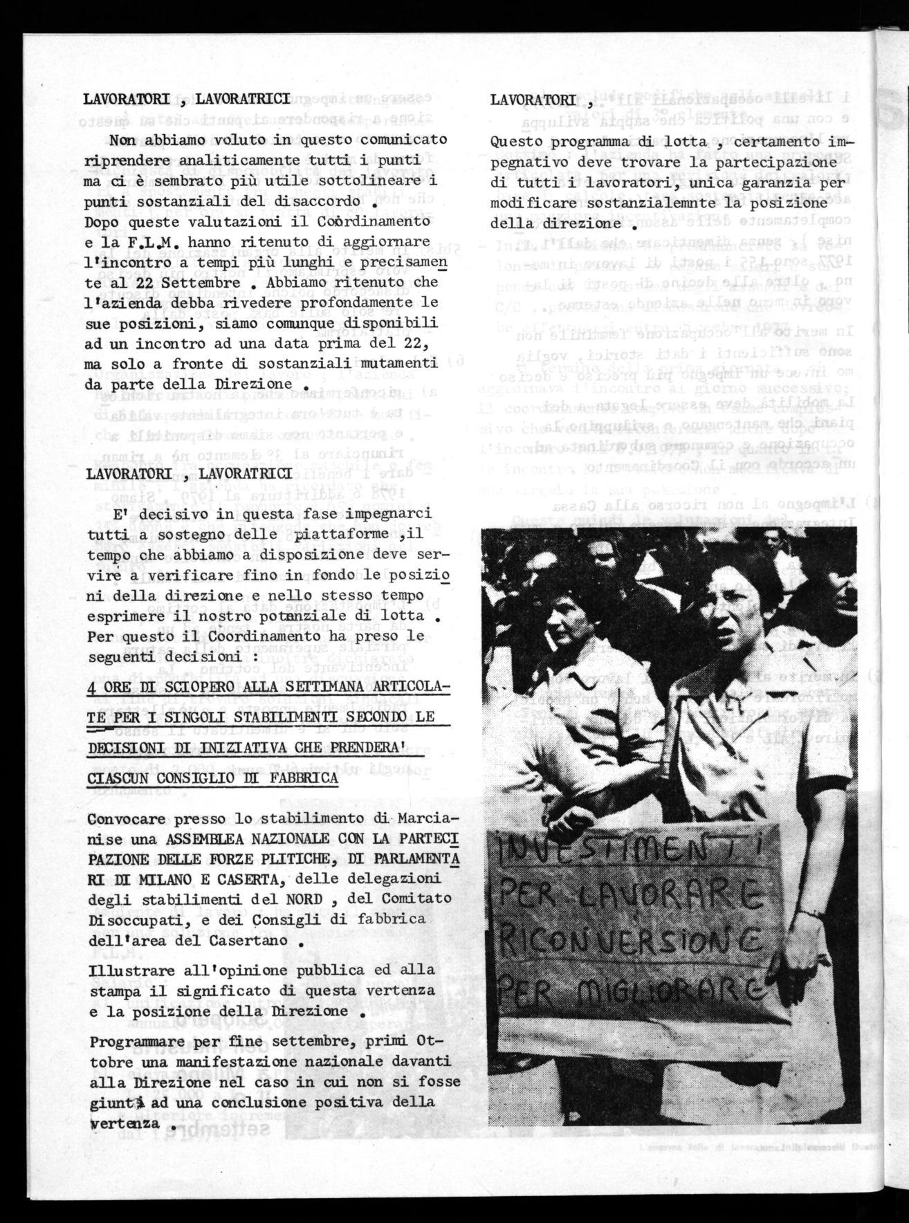 RI DI MILANO E CASERTA, delle delegazioni degli stabilimenti del NORD , del Comitato Disoccupati, e dei Consigli di fabbrica dell'area del Casertano